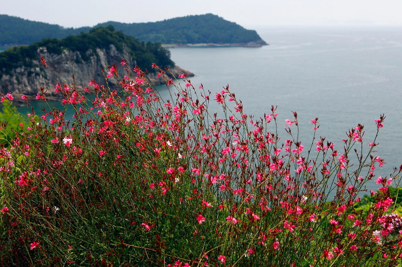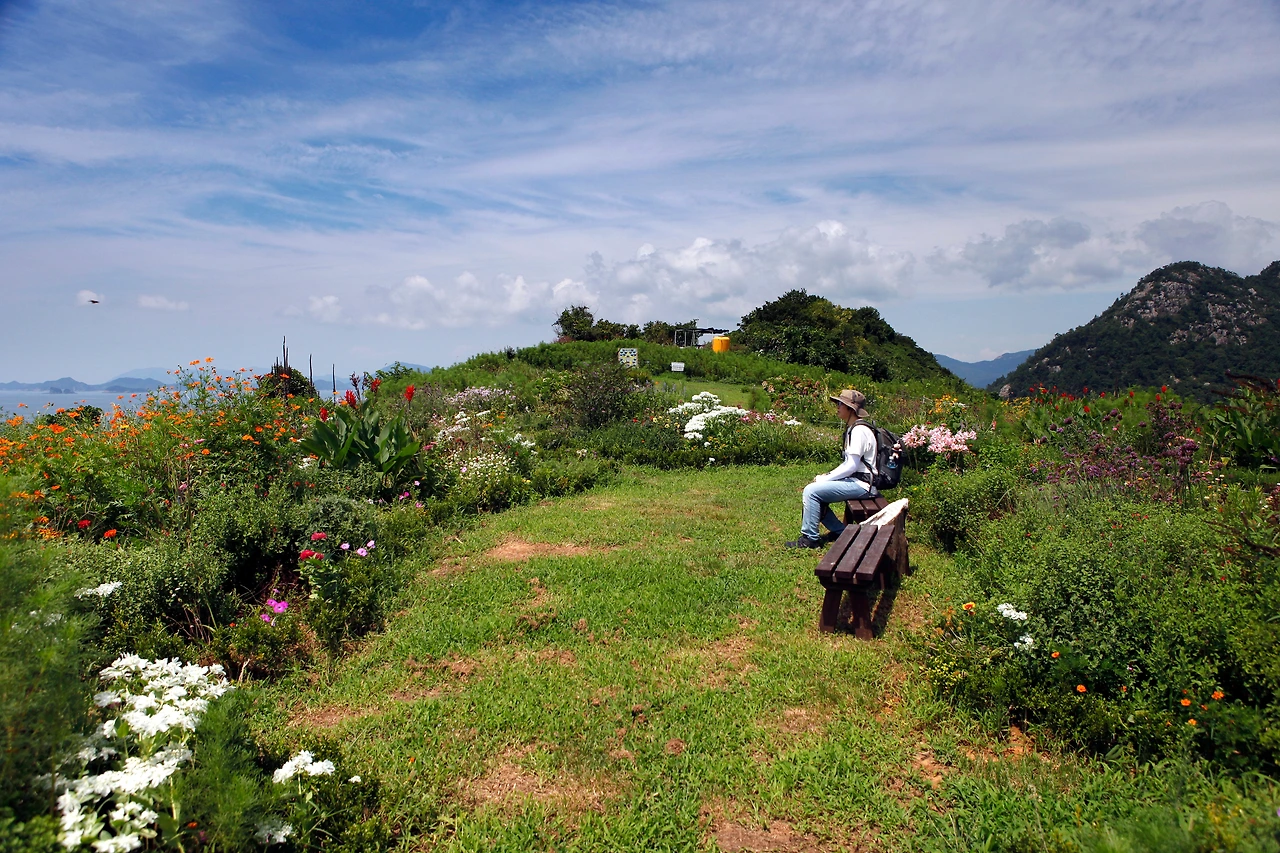 격렬하게 그 무엇도 하고 싶지 않았던 소망대로 누구의 방해 없이 혼자 혹은 둘만의 시간을 느릿느릿 보낼 수 있는 곳, 가슴이 뻥 뚫리도록 탁 트인 다도해의 절경을 바라볼 수 있는 곳, 청정 난대림의 푸른 골짜기를 지나 바다를 배경으로 아름다운 꽃밭을 만나는 곳, 애도의 하루는 힐링의 순간이 파도처럼 밀려온다.