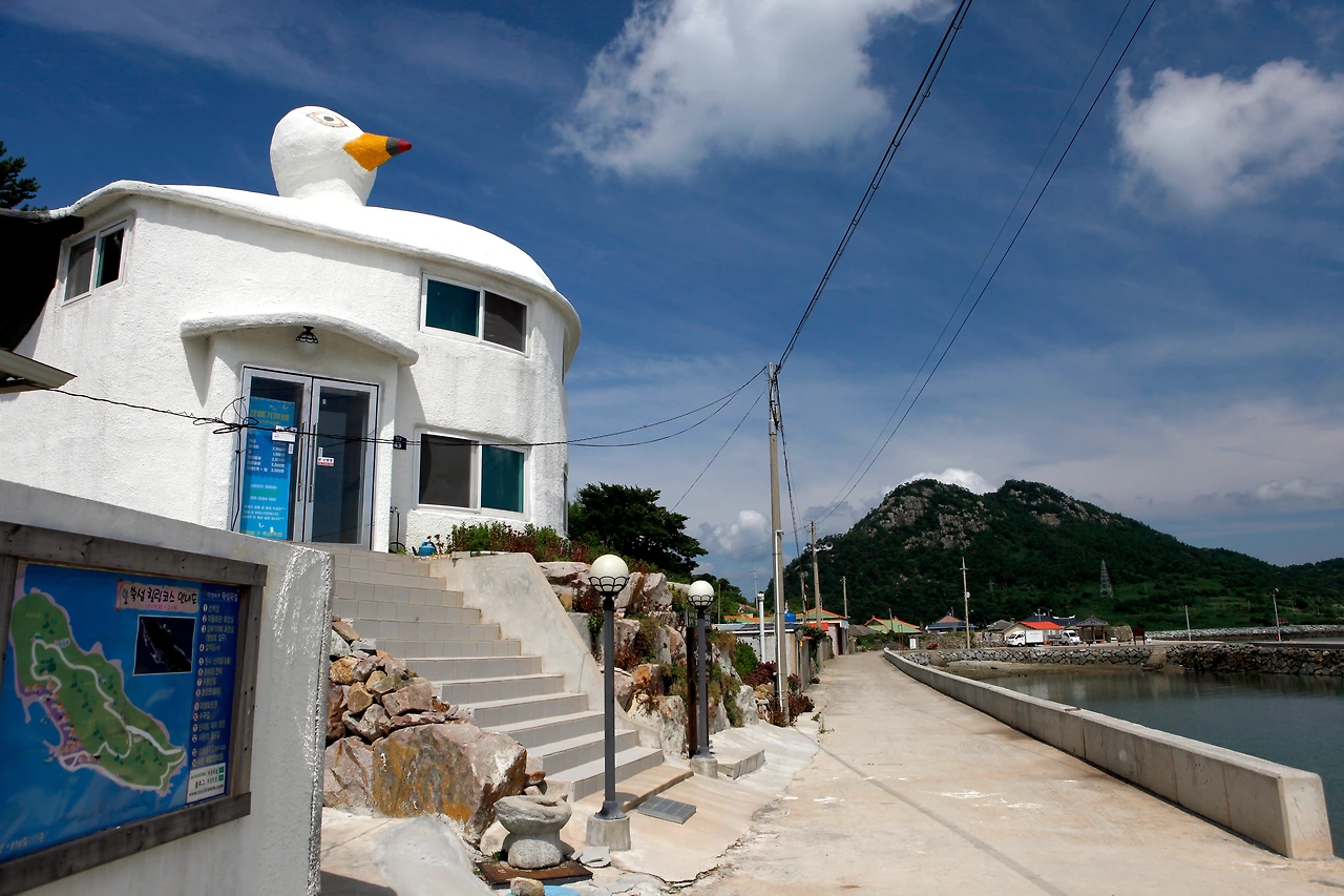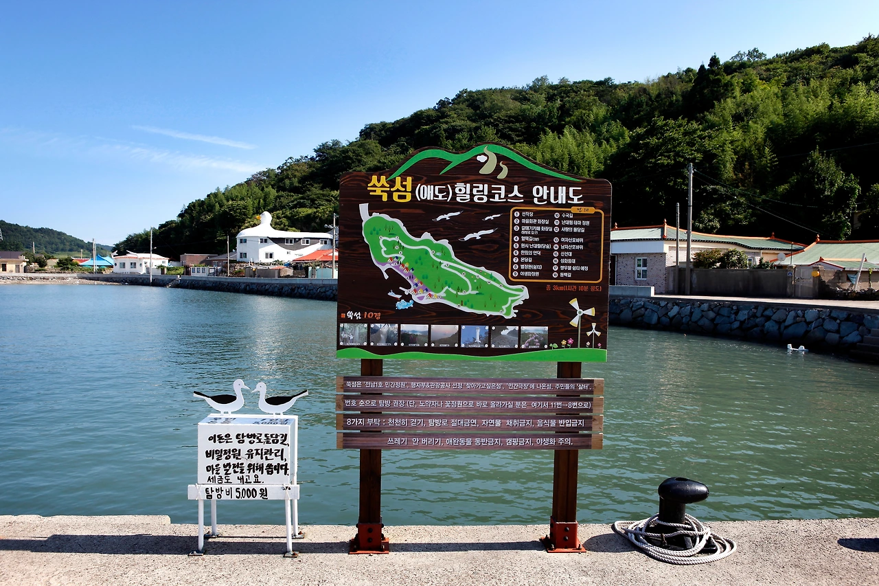 나로도 축정항에서 바라보면 애도 마을이 손에 잡힐 것 같다. 배에 타자마자 내려야 할 만큼 가깝지만, 잠시라도 배에서 맞는 바닷바람은 쾌적하고 시원하다. 애도 선착장에는 갈매기로 꾸며진 무인 탐방비 박스가 있다. ‘힐링파크 쑥섬쑥섬’의 입장료 5천 원은 섬과 주민을 위해 쓰인다. 무인박스 옆에는 애도 탐방 코스 안내도가 그려져 있다. 왼쪽 길로 가든 오른쪽 길로 가든 아름다운 애도의 풍광과 사랑에 빠지는 건 시간문제다.