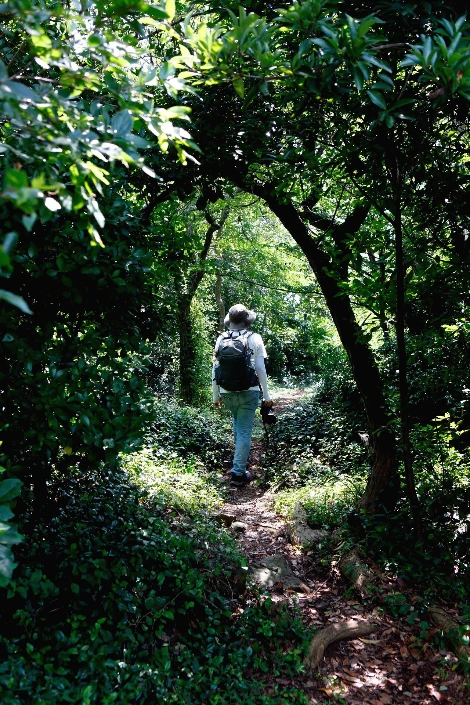 선착장에서 왼쪽 길로 접어들면, 갈매기 카페를 지나 탐방로로 가는 가파른 언덕길이 나타난다. 타박타박 오를수록 산길은 시원하고 호젓하다. 햇볕을 가릴 만큼 울창한 난대림 숲길에서 만나는 후박나무, 푸조나무, 육박나무와 돈나무 군락지는 영화 속의 밀림이 떠오를 정도다. 숨을 고르기가 무섭게 다도해와 수평선을 바라보며 걷는 3km의 몬당길이 이어진다. 산길을 오르다 해발 80m, 눈앞에 펼쳐지는 해상정원을 만나면 절로 감탄이 터져 나온다. 봄부터 겨울까지 300여 종의 꽃들이 알록달록 피고 지는 곳, 여기가 애도의 우주정원(별정원, 태양정원, 달정원)이다.