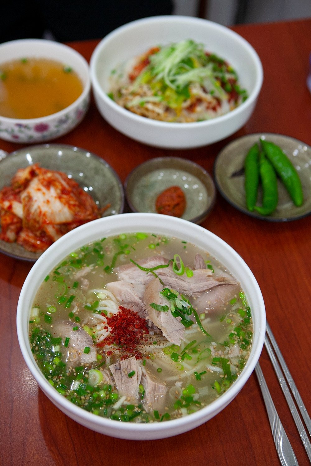 첫인상은 터프하지만 구수한 수육과 쫀득한 중면은 씹는 맛이 있어 색다르다. 일본라면과 비슷해서인지 일본인 관광객의 발길이 잦고 식사시간에는 기다릴 각오를 하고 찾아가야 하는 소문난 집이다.