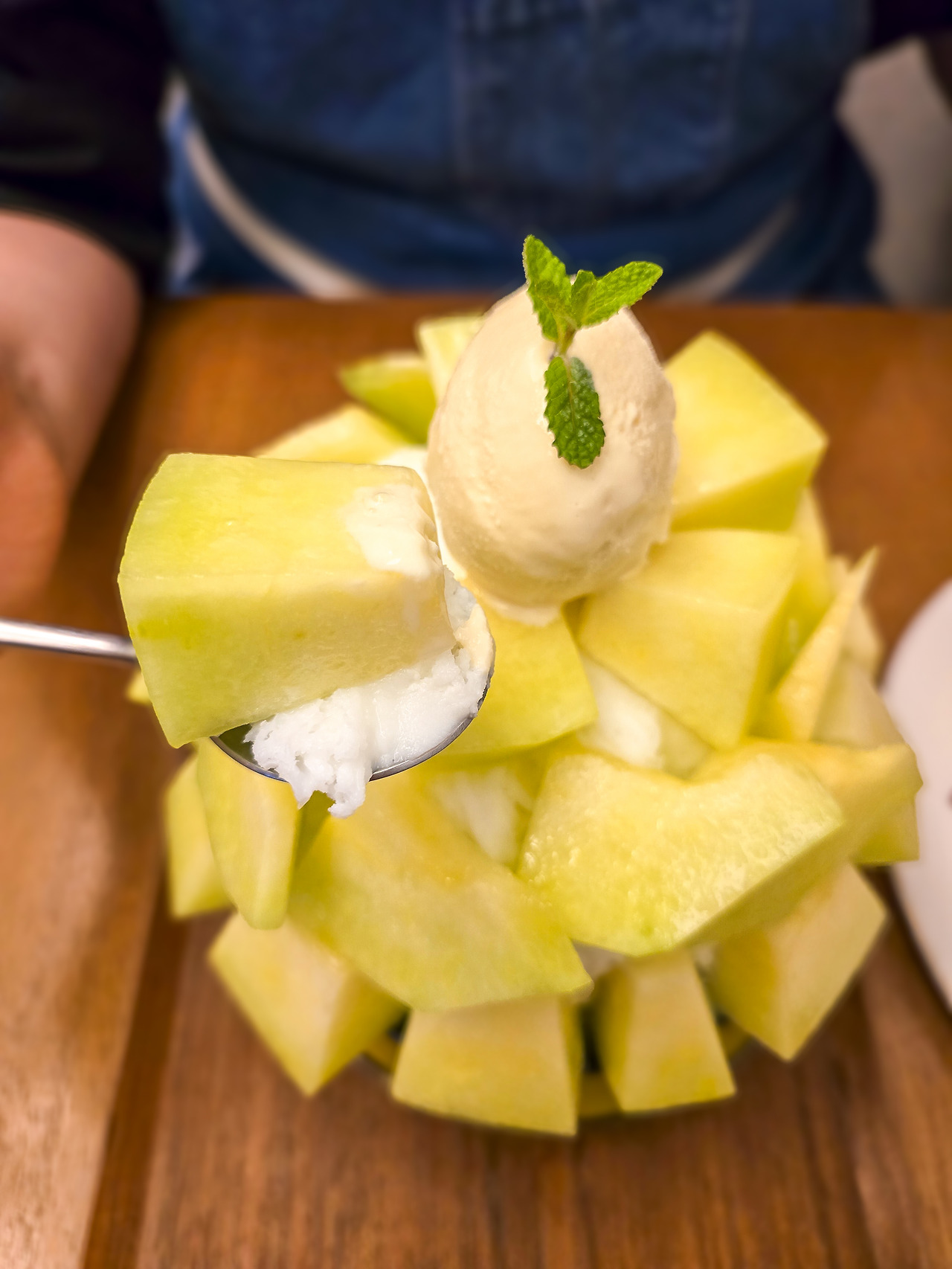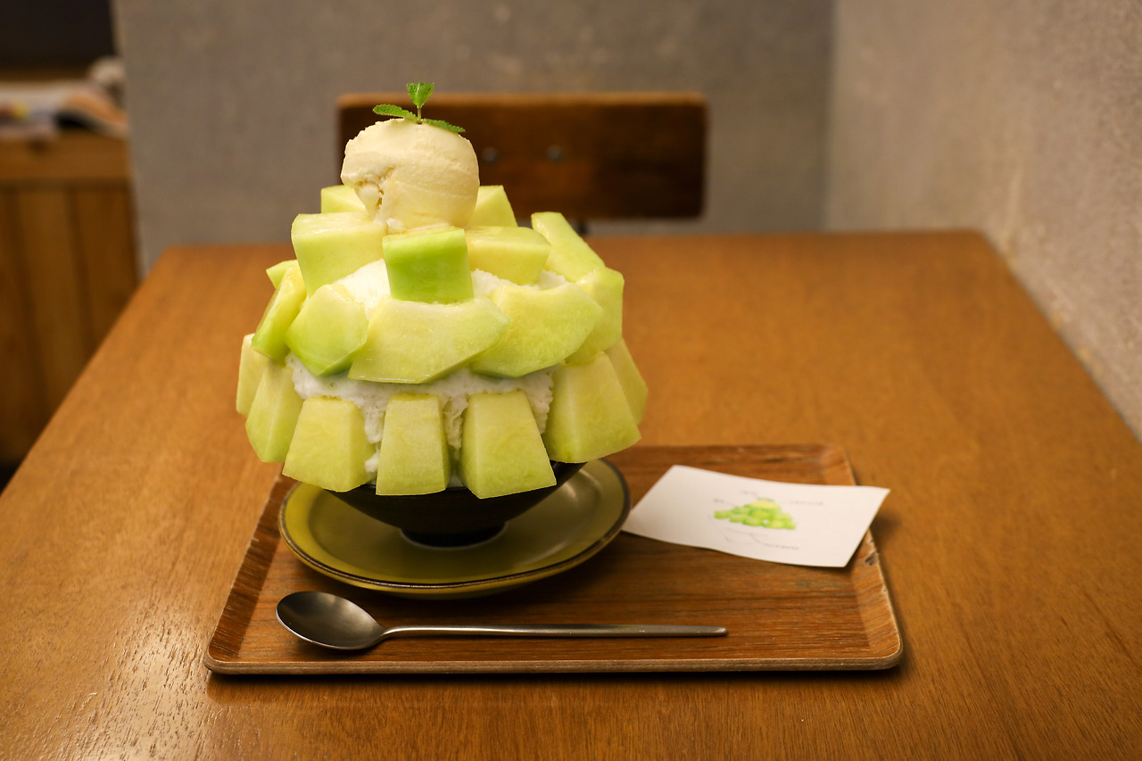당옥의 시그니처 메뉴인 ‘과일빙수’는 제철에 가장 맛있는 과일로 만든다. 겨울부터 봄까지 사랑받는 딸기빙수 외에도 여름에는 ‘멜론빙수’와 ‘복숭아 빙수’, 가을엔 ‘애플망고 빙수’와 ‘샤인머스켓 빙수’를 맛볼 수 있다. 하얀 눈꽃 얼음 빙수 위에 두툼하고 신선한 멜론 조각을 퍼즐처럼 붙여서 나온 ‘멜론빙수’는 투박한 비주얼에 더 입맛이 돈다.