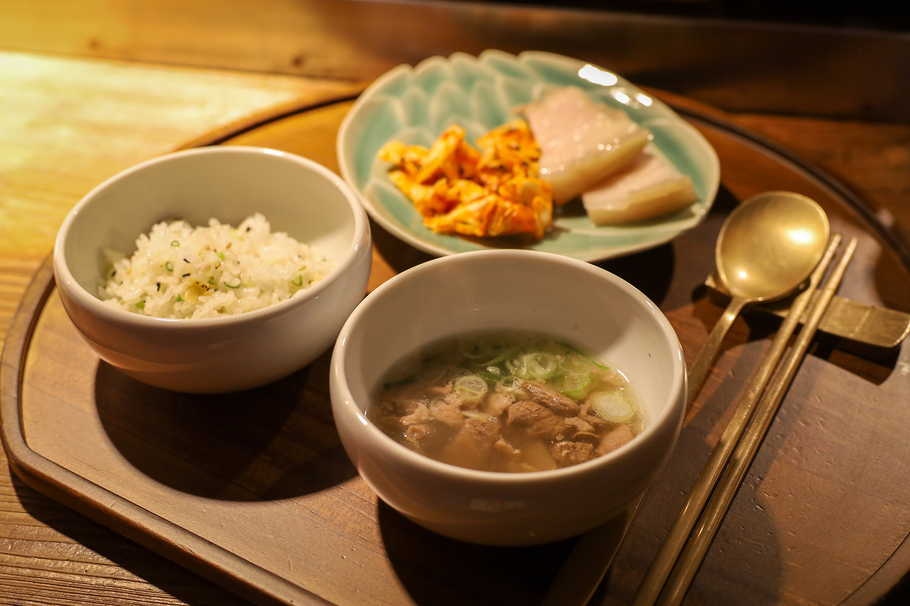 원목 고가구로 꾸민 바 테이블을 중심으로 전통미와 현대적 감각이 공존하는 공간에서 이북 전통음식을 음미하는 시간도 색다르다. 첫 번째 요리는 입맛을 돋우는 돼지머리 편육과 상큼한 제철 나물무침이다. 맑고 따뜻한 국물의 메밀 온면과 계절 음식이 차례로 나온 뒤 직접 손으로 순대 속을 채워 쪄낸 특별한 순대 코스가 시작된다.