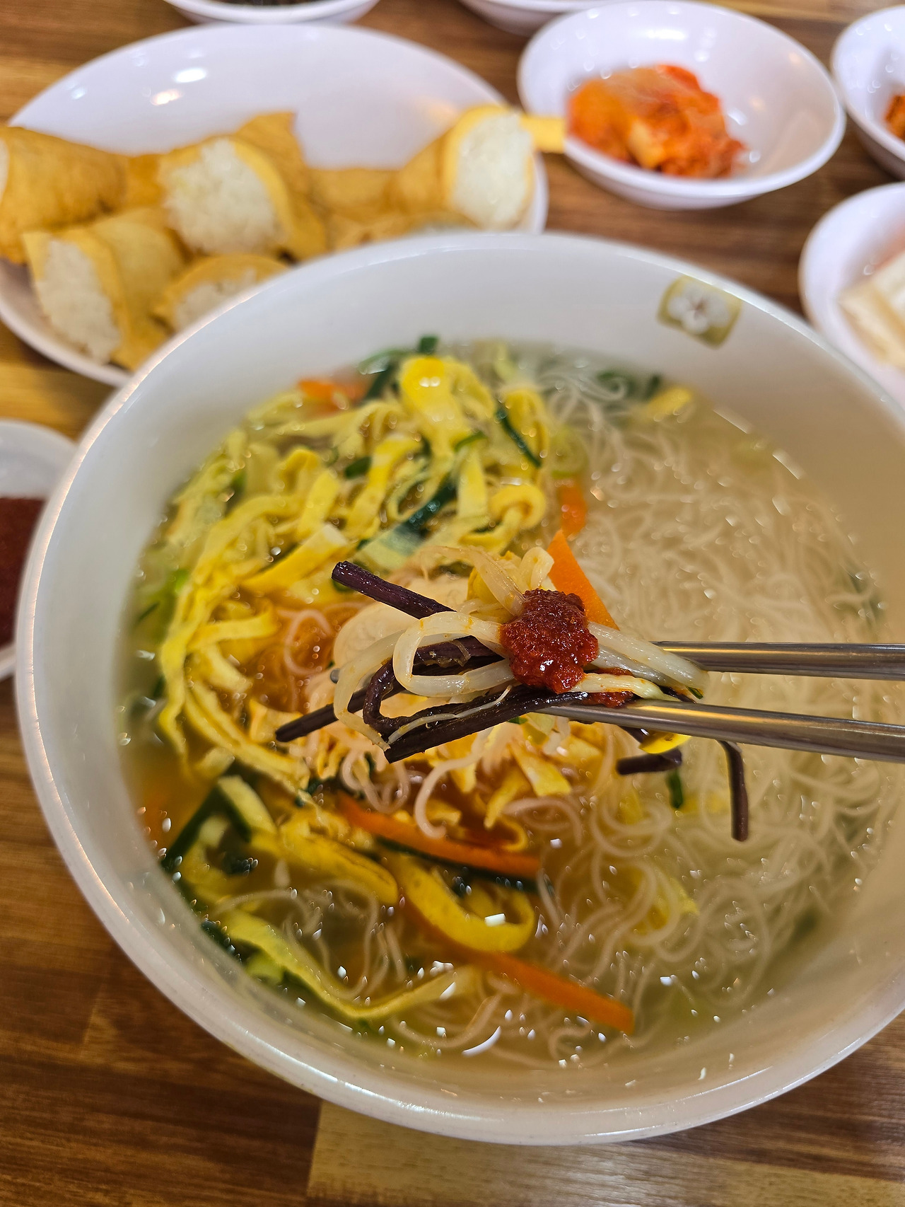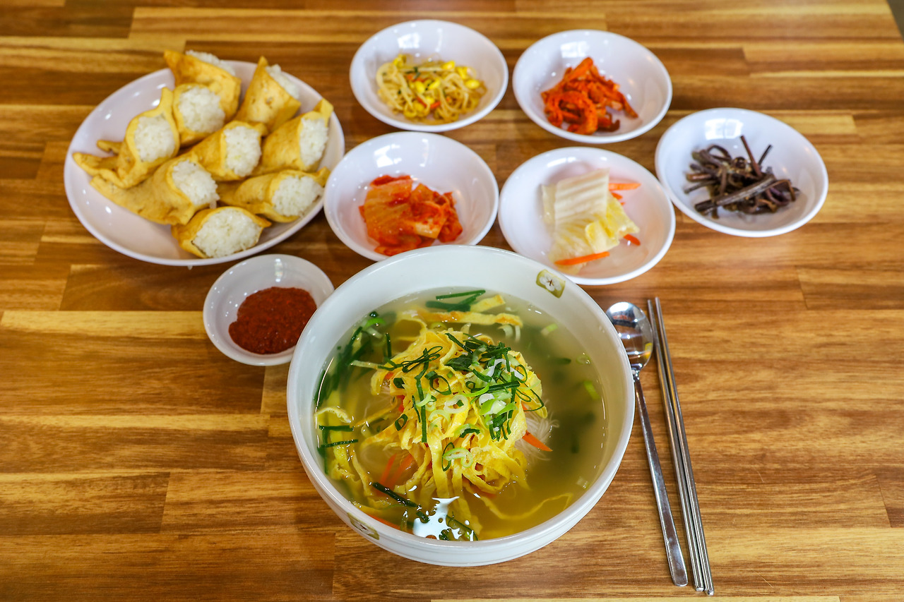 노란 달걀지단이 그득하게 올려 나오는 농마국수는 온면, 냉면, 비빔면으로 먹을 수 있다. 잔치국수와 비슷한 맛의 온면은 담백한 육수에 가늘고 쫄깃한 감자면의 매력이 살아있다. 두부밥의 짝꿍인 빨간 양념을 국수에도 조금 풀어 넣으면 칼칼하고 개운하게 즐길 수 있다. 언 감자떡의 매력도 빼놓을 수 없다. 양배추를 채 썰어 고춧가루 등 매운 양념에 볶아서 쫀득한 감자가루 반죽에 넣어 만두처럼 쩌내는데, 색다른 풍미에 자꾸만 손이 간다.