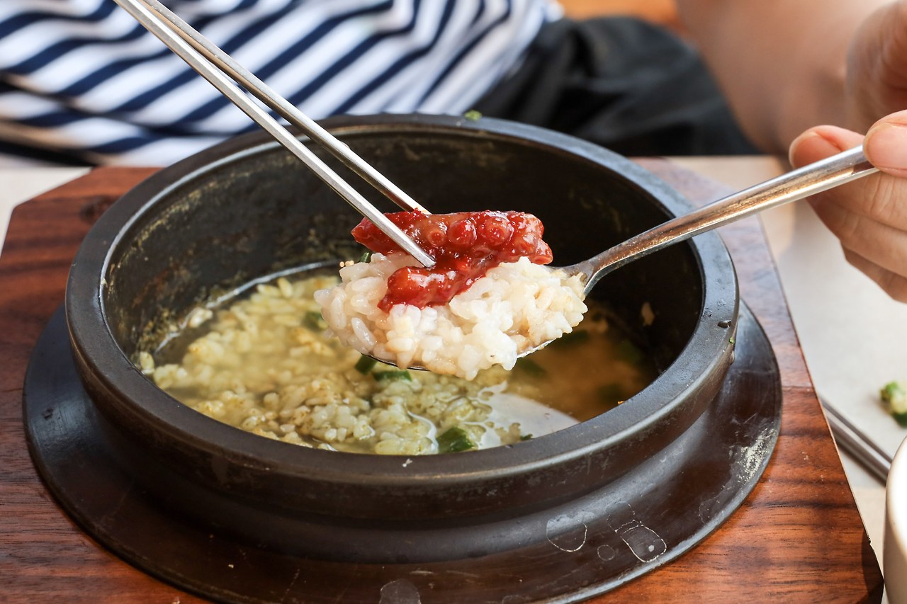 누룽지에 곁들여 먹기 좋은 젓갈 4형제의 맛이 빛을 발했다. 오독한 낙지젓갈을 얹어 한 입 개운하게 마무리.