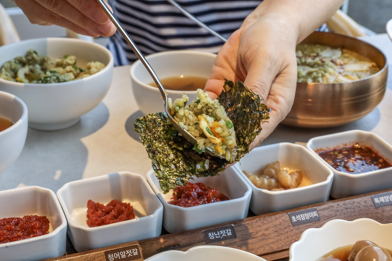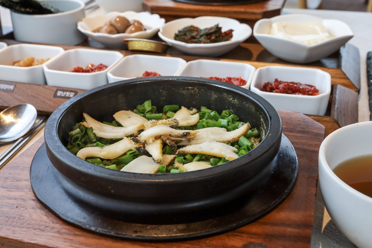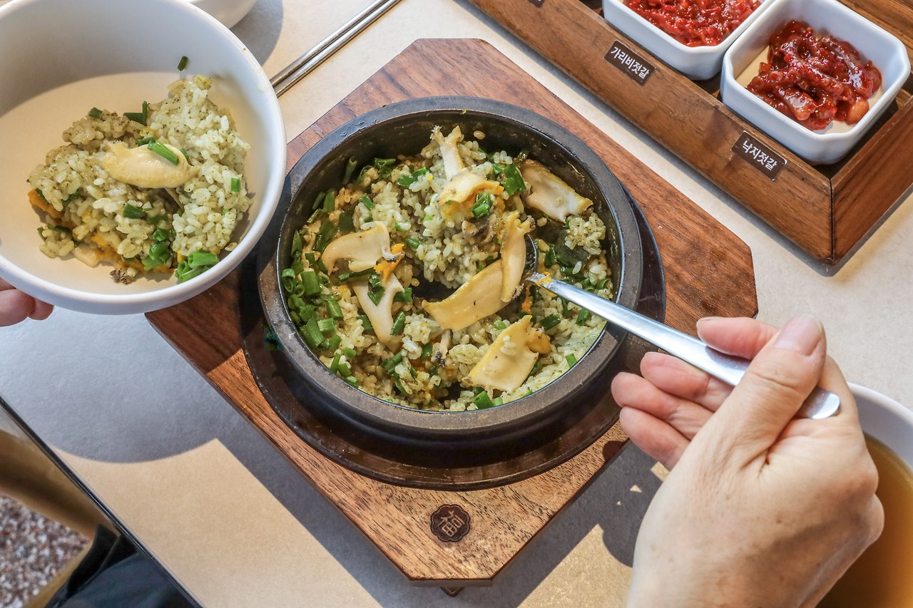 오독한 낙지젓갈과 청어알젓 갈, 쫀득한 창난젓갈과 가리비젓갈이 찰떡같이 어울리는 곱창김밥이 인상적인 밥상이다. 밥만 먹어도 맛있는 돌솥밥에 전복과 불고기가 들어가서 새롭고 매력적인 밥상을 만날 수 있었다.