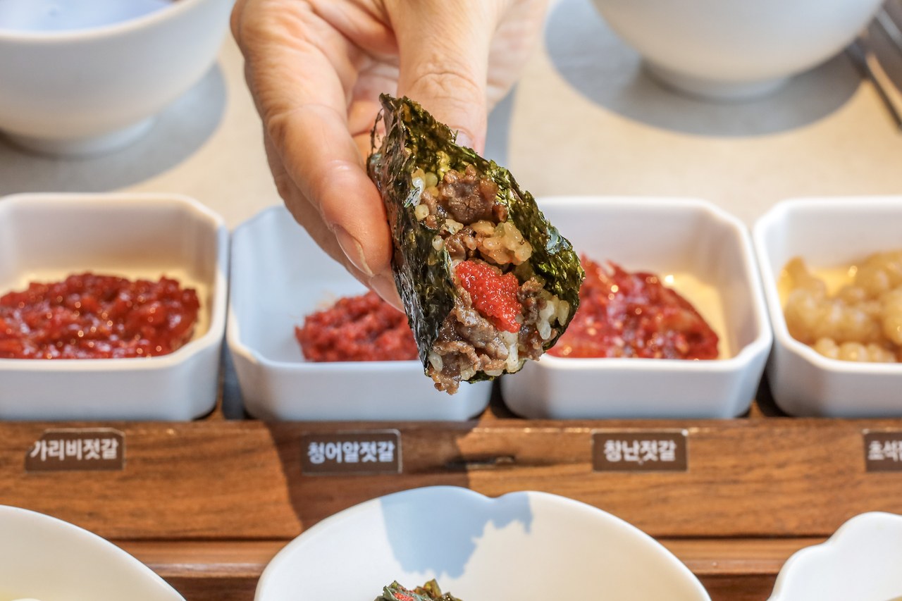 불고기 솥밥은 간이 알맞게 된 불고기를 듬뿍 올린 솥밥에 달걀노른자를 얹어 비주얼에서도 합격이다. 솥밥에 얹은 불고기만으로 충분히 간이 잘 되어 그냥 먹어도 맛있다. 곱창김에 불고기 비빔밥을 떠놓고 그 위에 가리비젓갈을 하나 얹어 먹으면 개운한 맛이 일품이다.