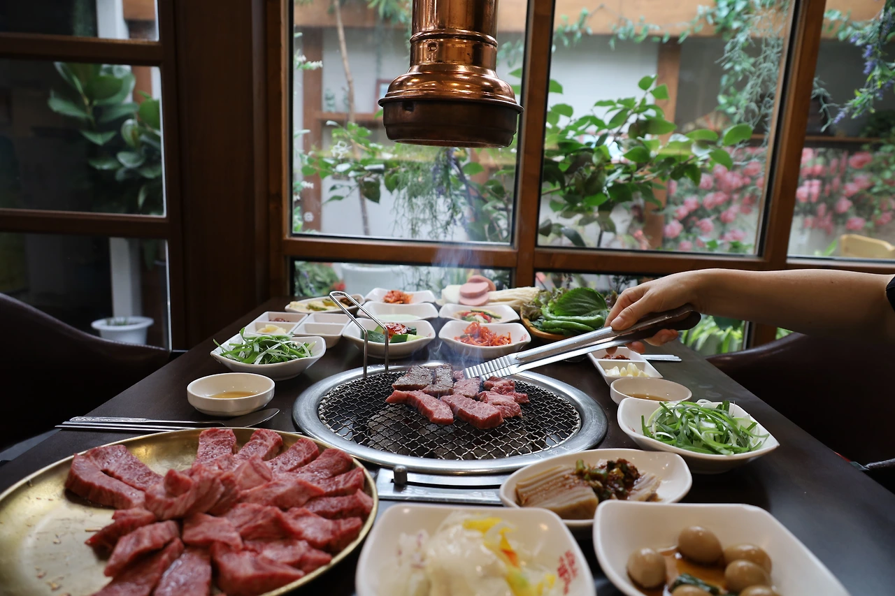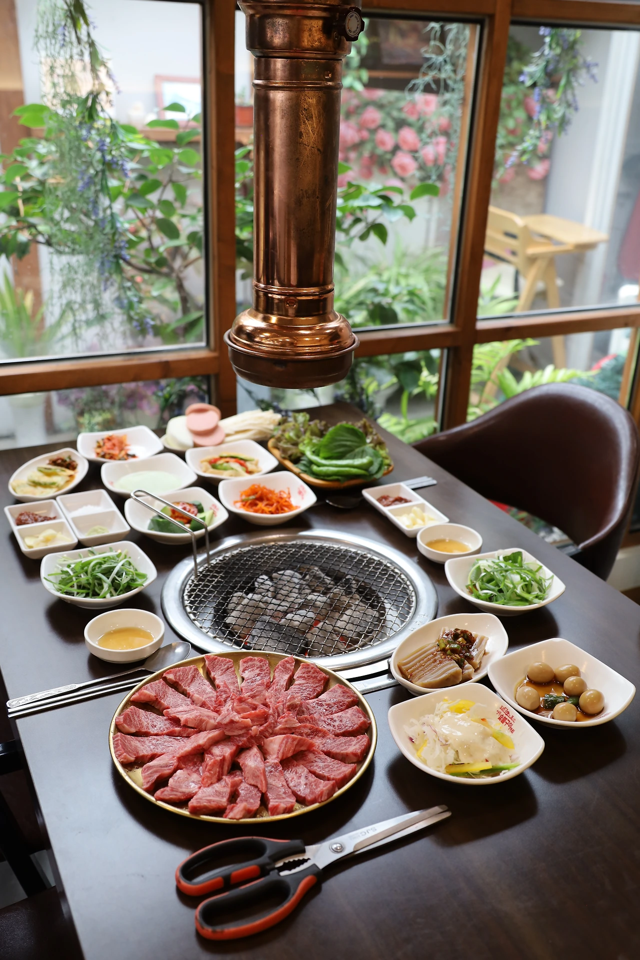 영주 한우 갈빗살을 주문하면 10여 가지 반찬의 한정식 같은 밥상을 차려진다. 안동 종갓집 맏딸인 주인장의 타고난 손맛에 손님을 배려하는 정성까지 더해지니 갈빗살이 익어가는 동안 집밥을 먹는 듯한 마음이 훈훈하다.