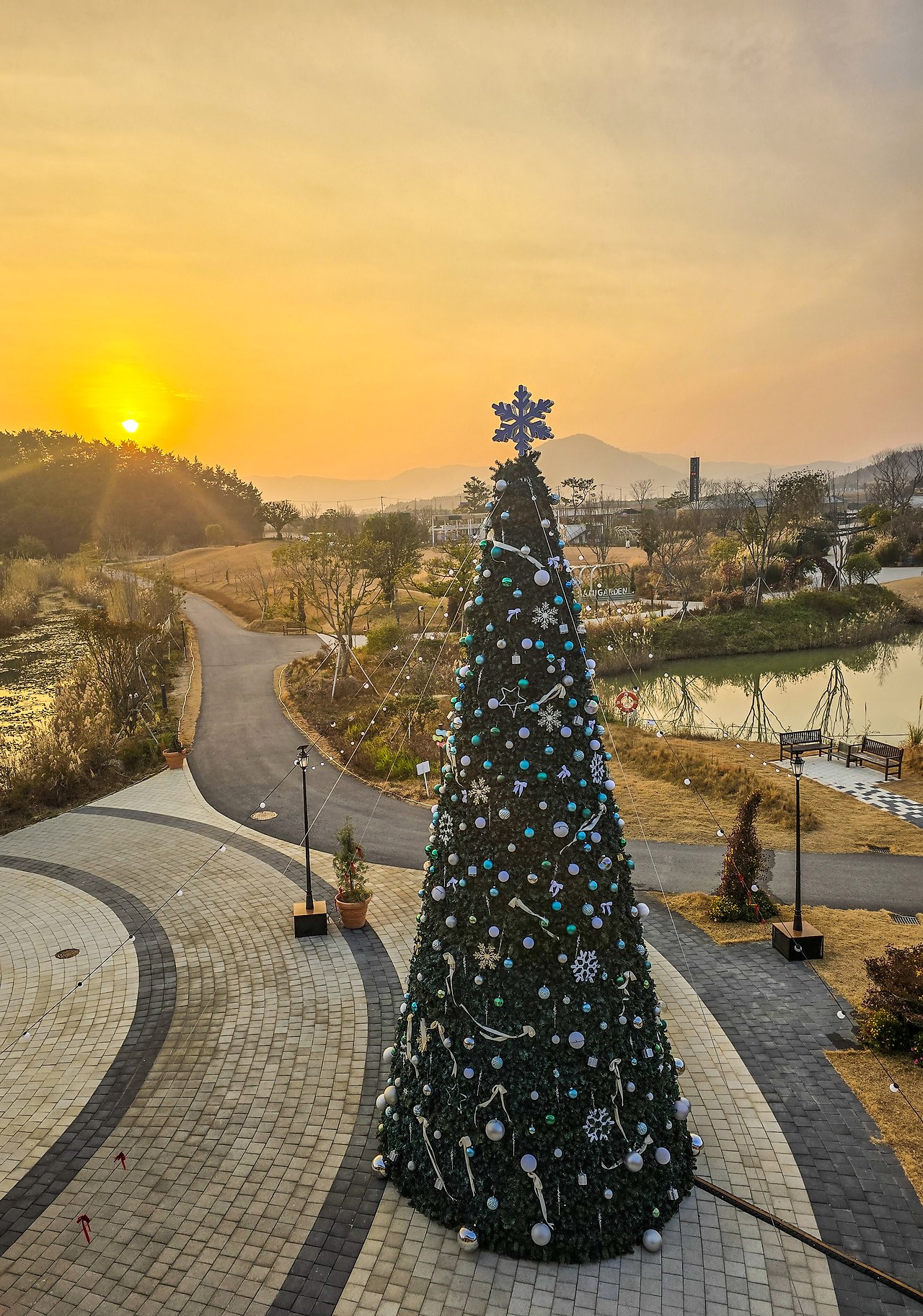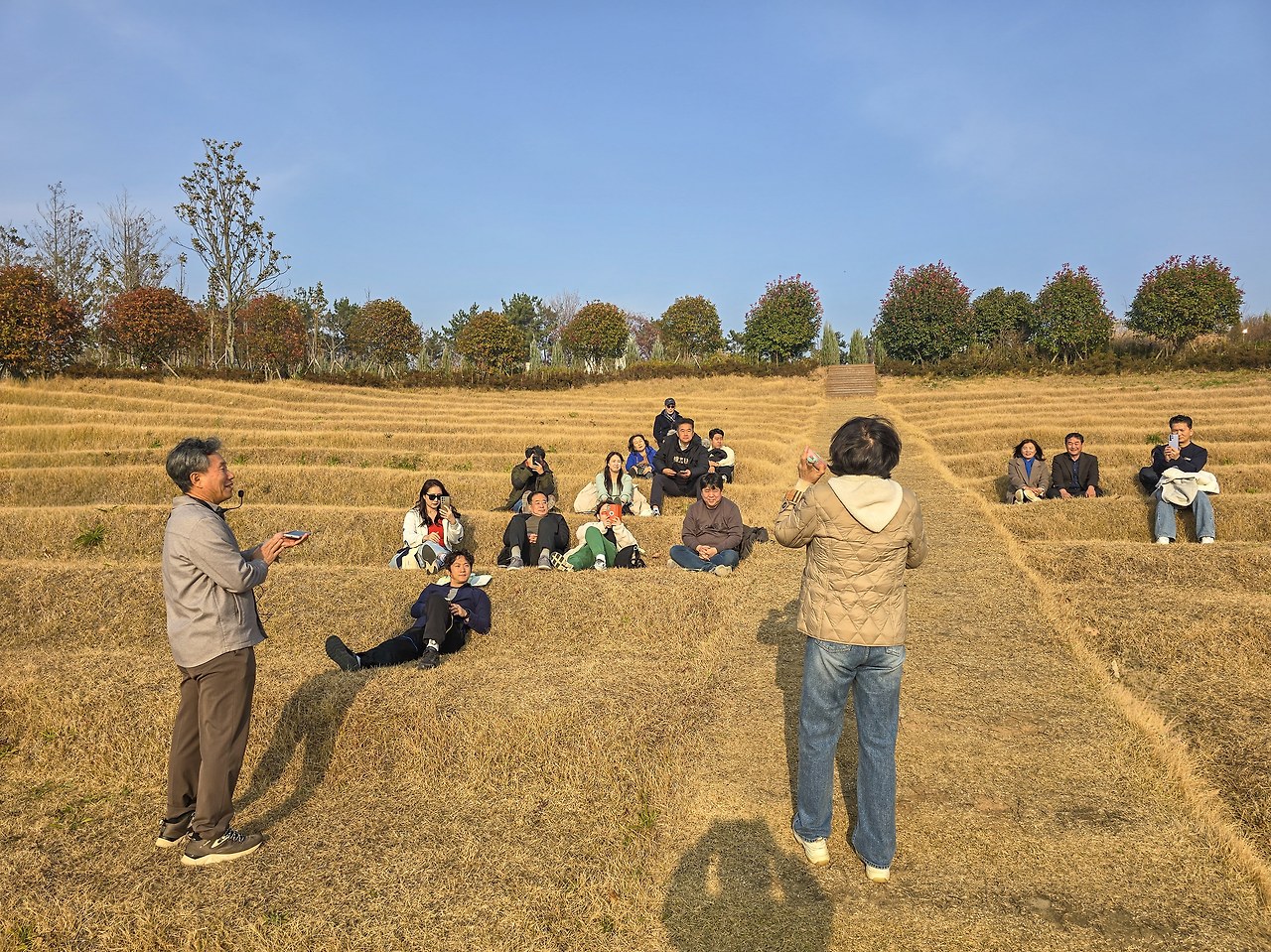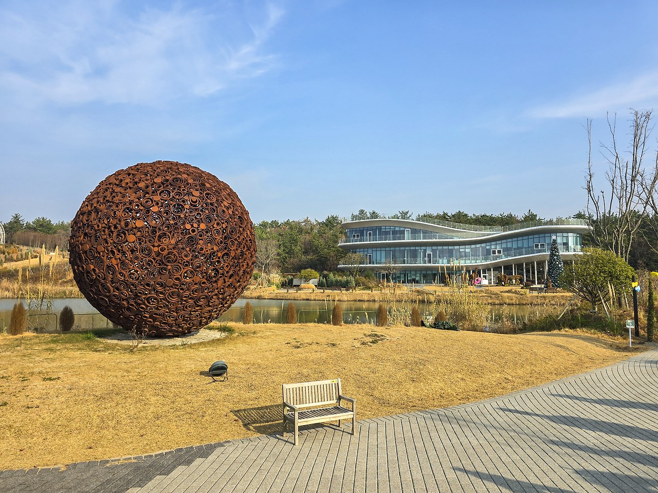 산이정원의 하이라이트였던 자연 공연장에서 우연히 만난 성악가의 즉석 공연이 있었다. 푹신한 잔디 의자에서 가곡 공연을 즐길 수 있었다. 겨울하늘로 퍼지는 한국 가곡의 버스킹 공연을 즐기는 기분이 힐링이었다.