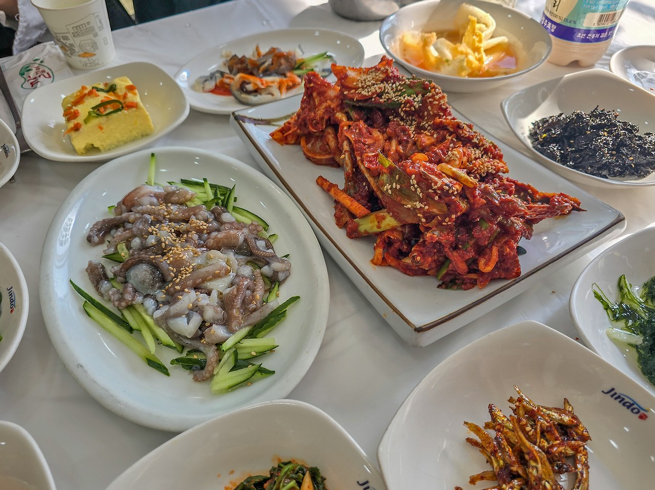 남도여행의 가장 큰 즐거움은 음식이다. 다른 지역에서는 맛볼 수 없는 깊은 풍미와 감칠맛을 기대하게 된다. 진도에서의 첫끼는 뱃고동 식당의 갈비뜸북국과 산 낙지, 꽃게무침, 낙지호롱이로 차려진 남도 밥상이다. '뜸북'은 톳의 진도방언이다. 뜸북갈빗국은 시원한 해조류와 구수한 고기국물이 만나 향토요리로 탄생한 것이다.