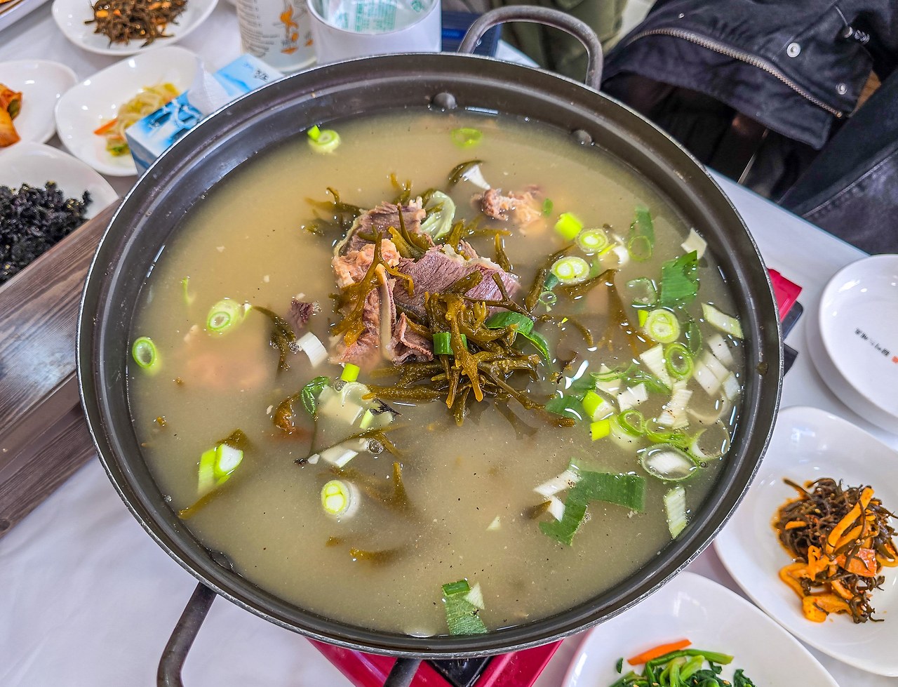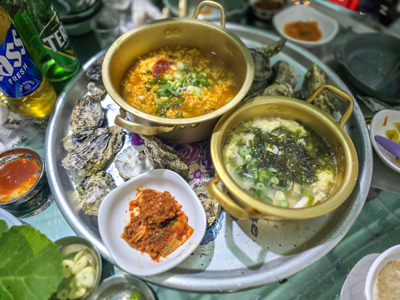 세 번째로 맛있는 건 굴떡국과 굴라면이었는데, 쫀득한 떡국과 굴에다 남도 김치를 얹어 먹는 맛이 일품이다.