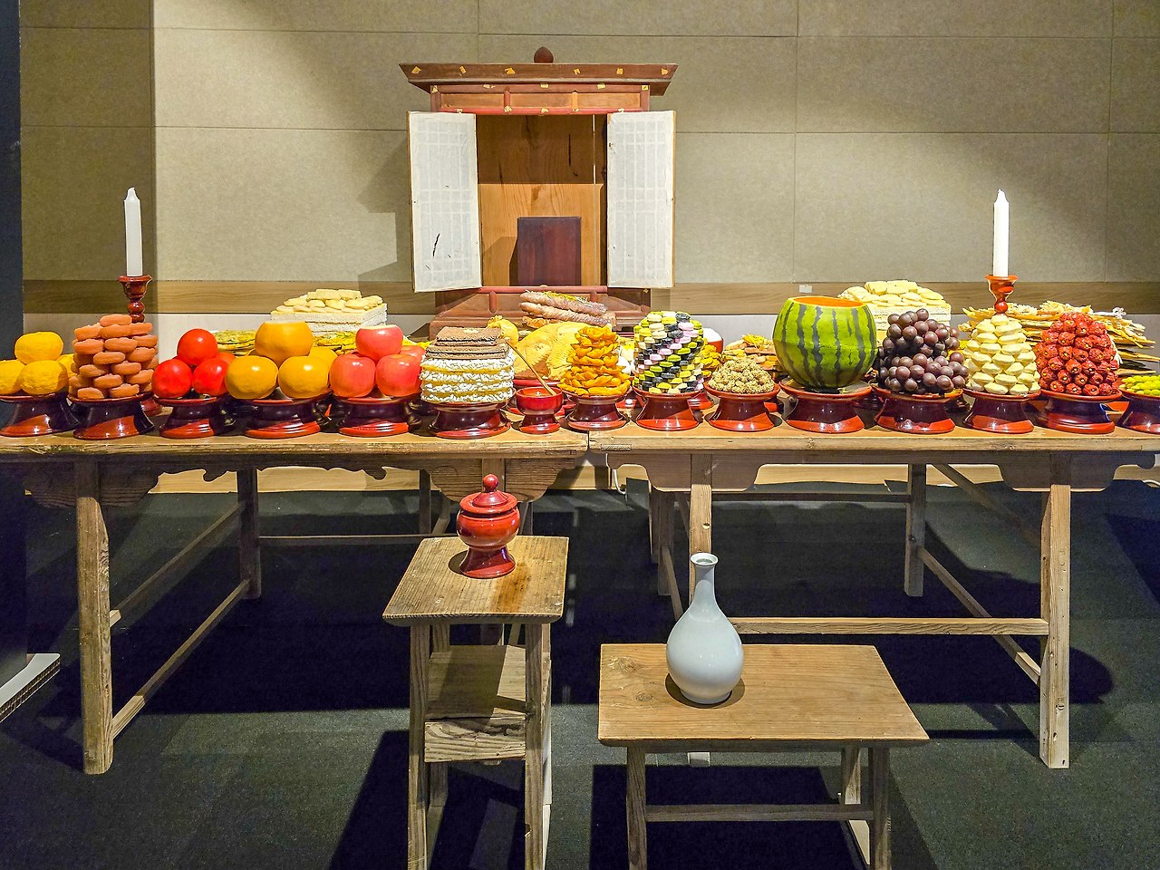 고산 윤선도 박물관에는 600년 이상 터를 잡고 살아온 해남 윤 씨 집안의 역사와 유물을 한눈에 볼 수 있다. 제사상에 눈길이 갔다. 지역마다 제사상에 올리는 음식이 다르다고 하니 해남 윤씨 집안의 상차림을 보았다.