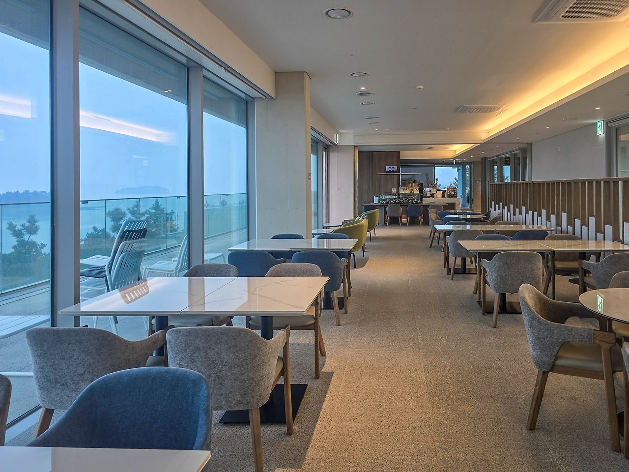 어두워진 바다를 바라보는 풍경도 차분하고 평화로웠다. 야외 인피니티 풀이 있다고 하니 여름이 좋을 듯.