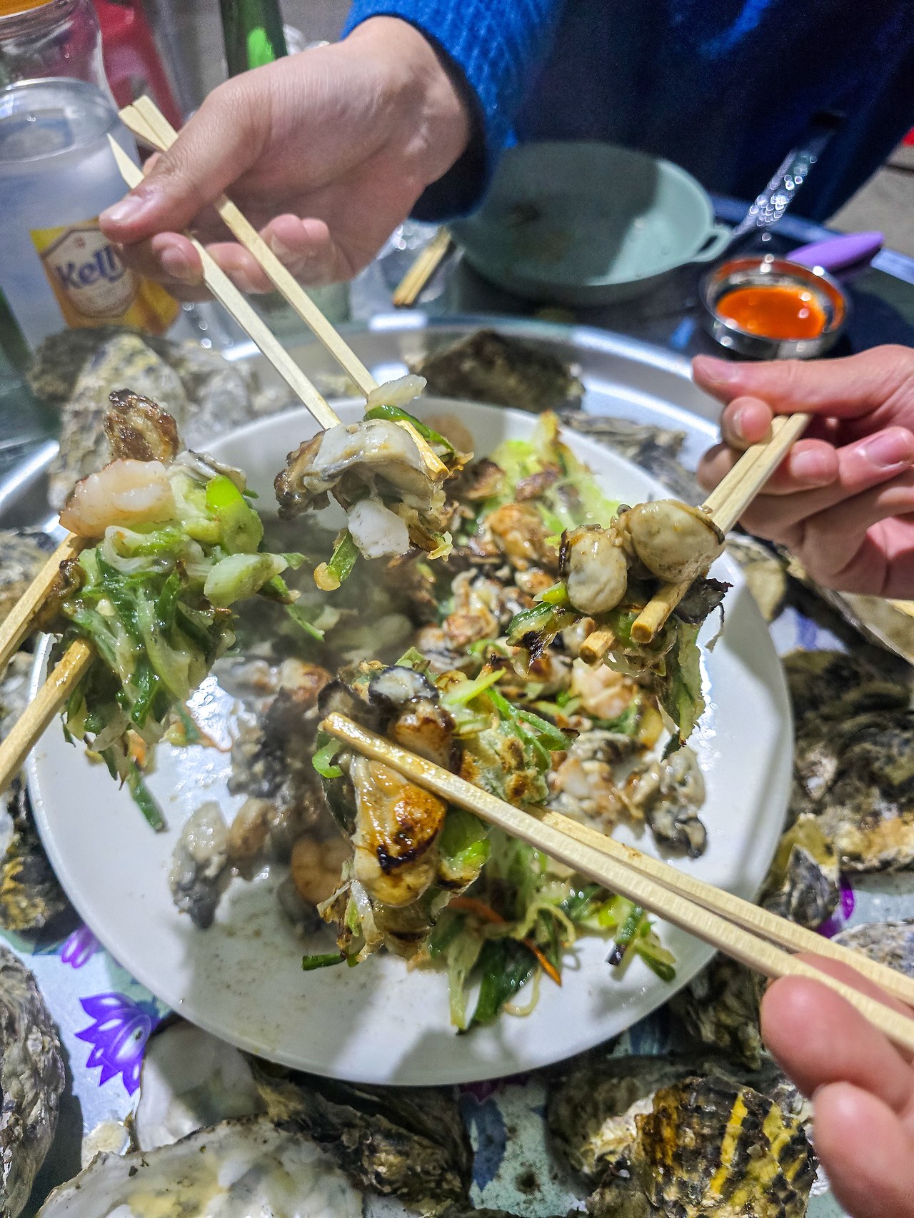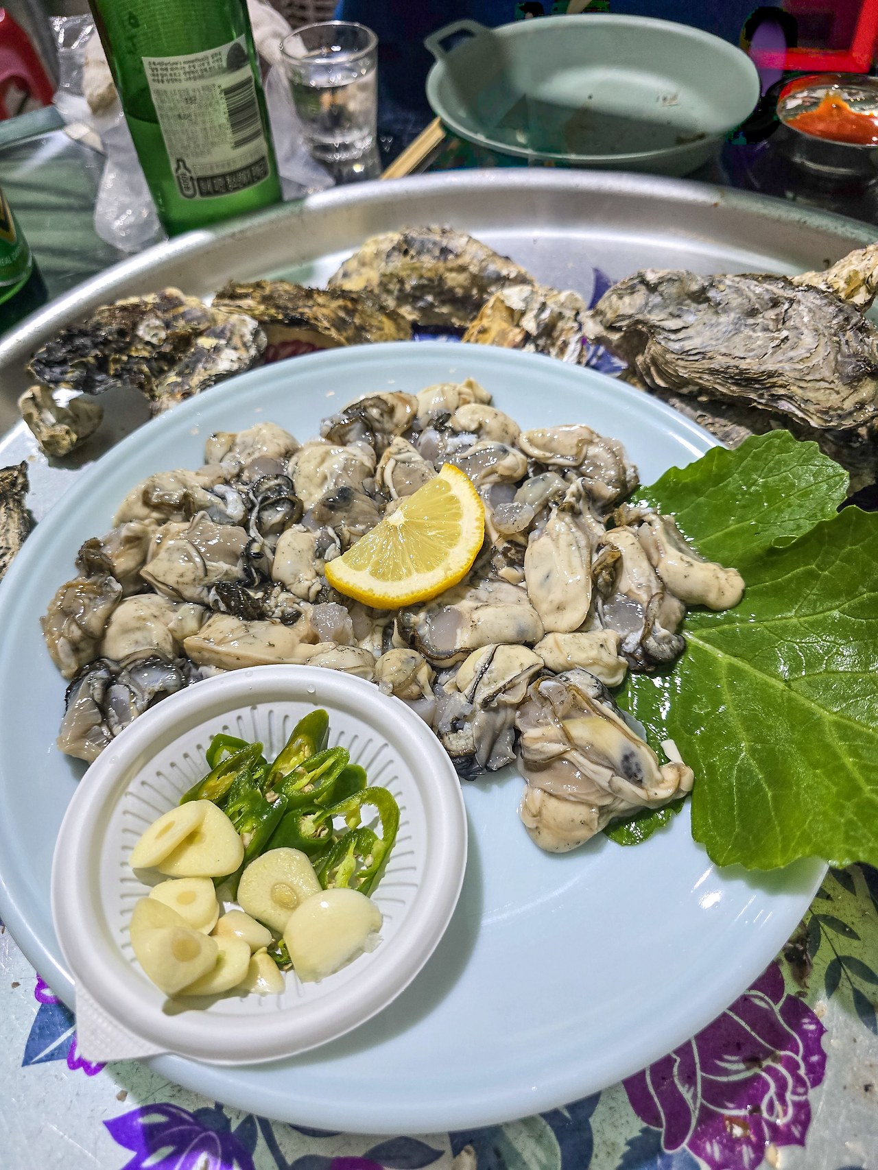 가장 맛있었던 건 바다향이 가득했던 생굴 한 접시, 넷이서 게눈 감추듯 다 먹고 한 접시 더 주문해서 먹었다.