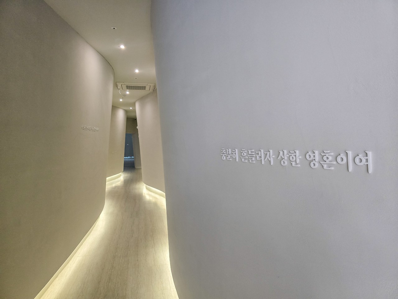 고산 윤선도 유적지를 돌아보고 시간이 남아서 땅끝순례문학관에 들렀다. 한국문학사에 큰 발자취를 남긴 해남 출신의 문학가들을 소개하는 곳이다. 해남을 상징하는 땅끝과 문학적 영감을 위해 시문학의 성지인 해남을 순례하듯 찾아온 모든 문인들의 발걸음을 의미하는 '순례'를 결합해 땅끝순례문학관이라는 이름을 지었다고 한다. 해남의 예술적인 기운이 느껴지는 곳이다. 기획전시실을 비롯해 북카페, 전망대가 있어 돌아보기 좋다.