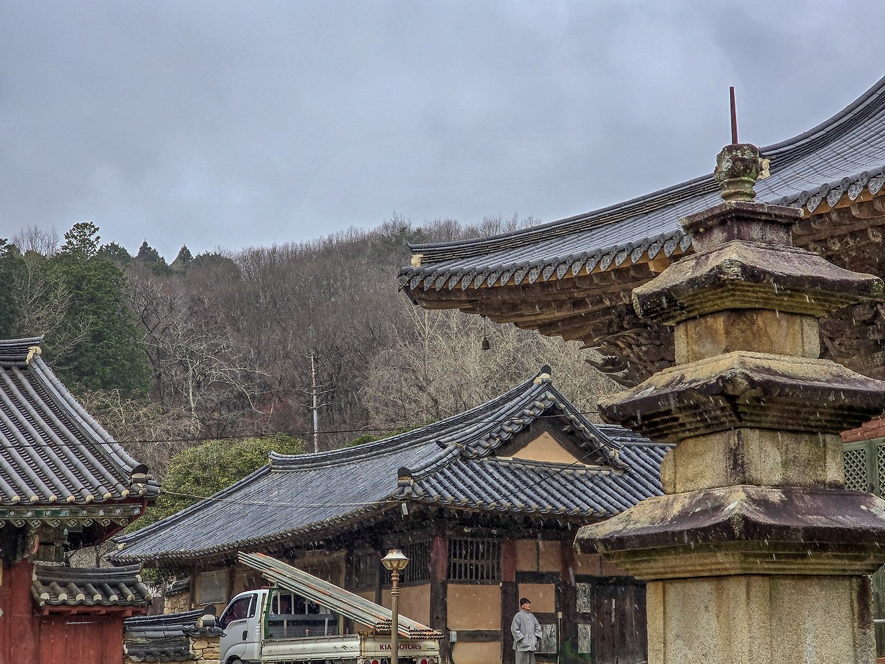 비가 부슬부슬 내리다 진눈깨비로 변했다가 눈발이 날렸던 선암사의 오후는 날씨에 상관없이 아름다웠다. 산자락과 자연스럽게 연결되는 처마끝을 바라보느라 경내를 한바퀴 돌아보는 동안 '자연스러운' 아름다움에 깊이 매료되었다.