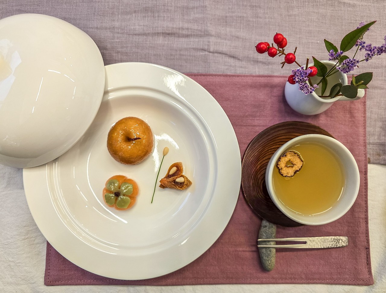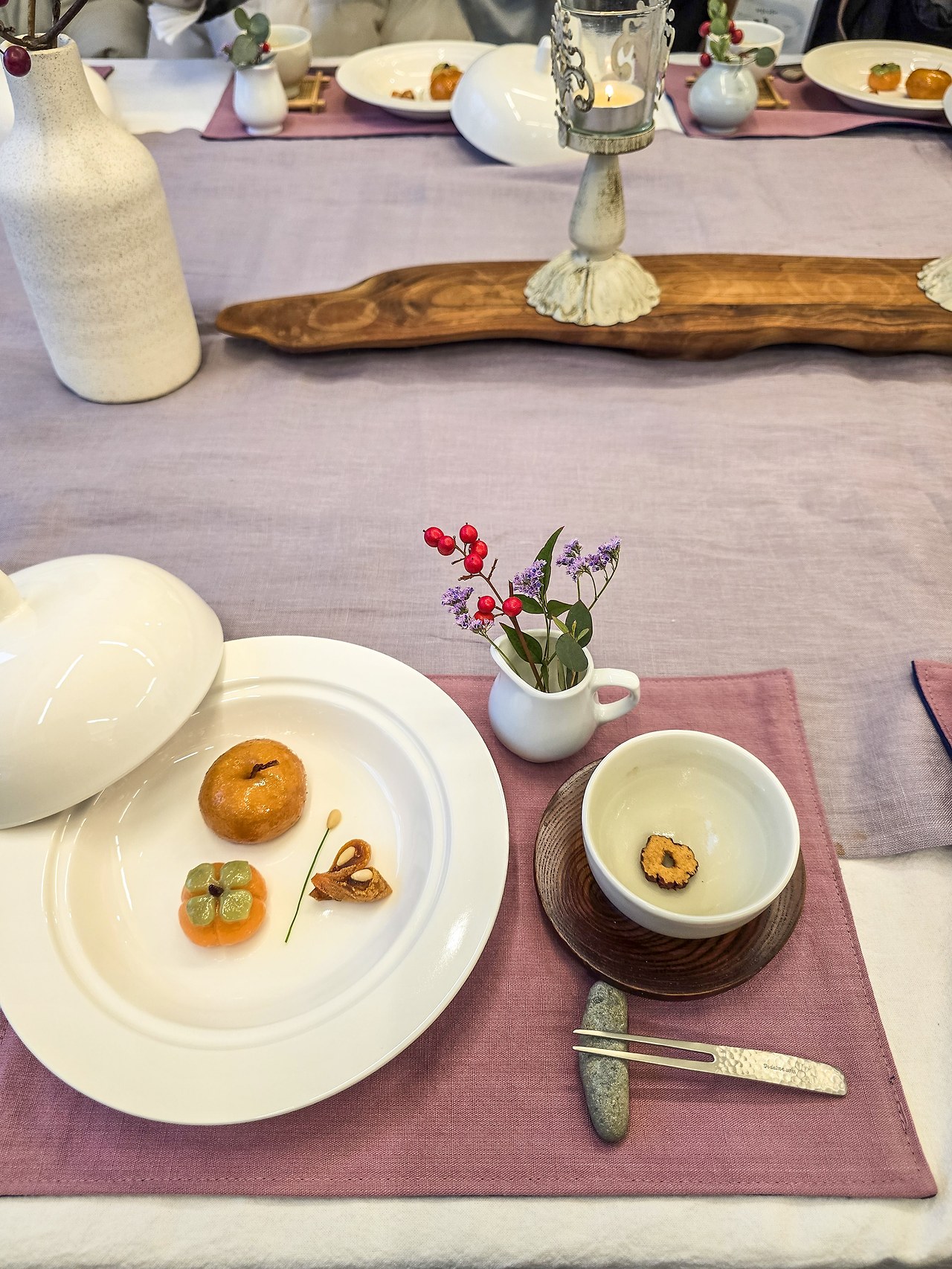 작은 배처럼 생긴 디저트와 감모양의 떡은 장인의 정성이 듬뿍 담긴 우리 전통 후식의 맛을 담았다. 맛도 특별했지만, 모양이나 차림새가 너무 아름다워서 먹기 아까울 정도였다. 순천에는 어찌 이렇게 솜씨좋은 장인도 많은지 행복한 감탄이 나오는 하루였다.