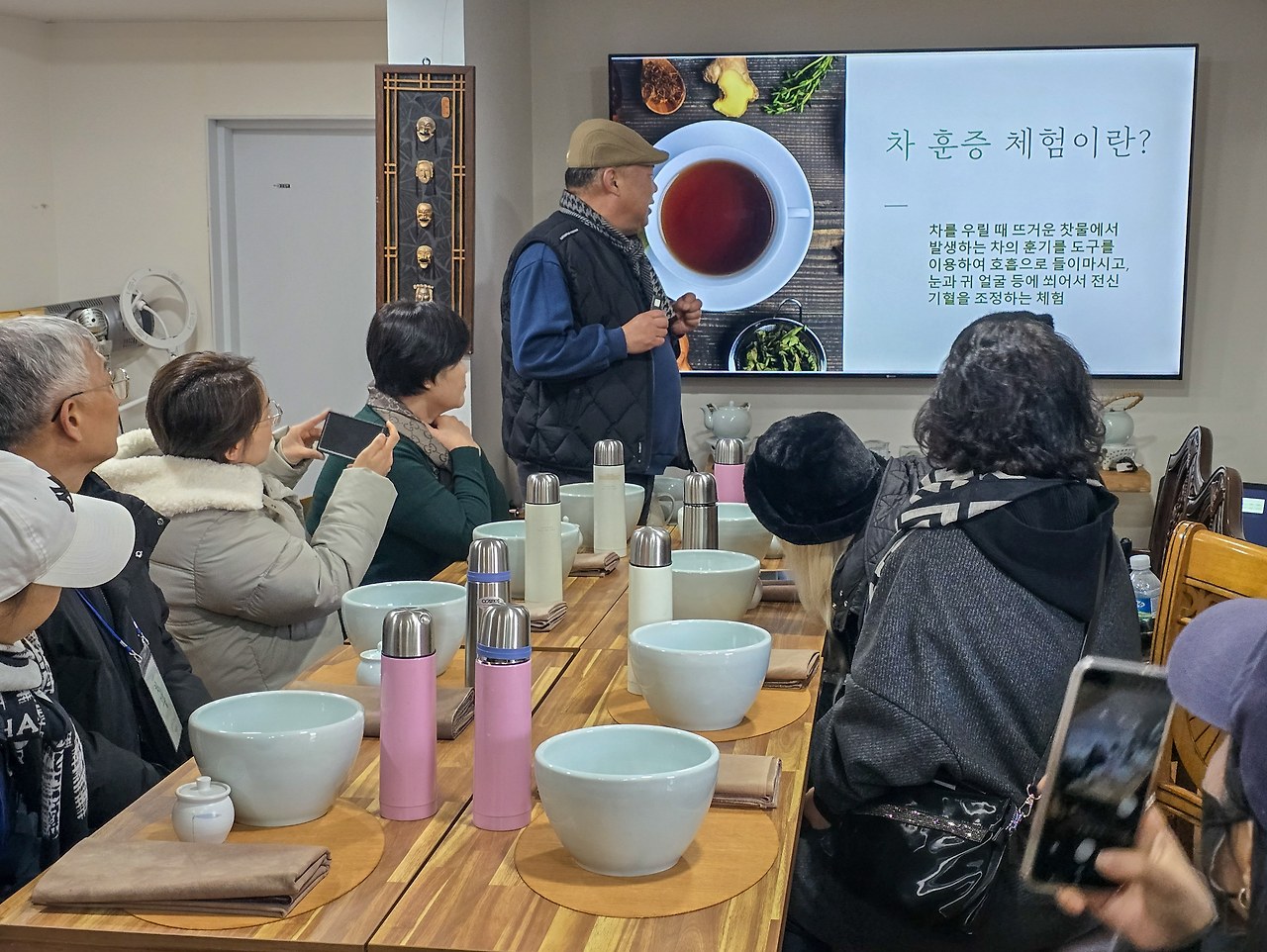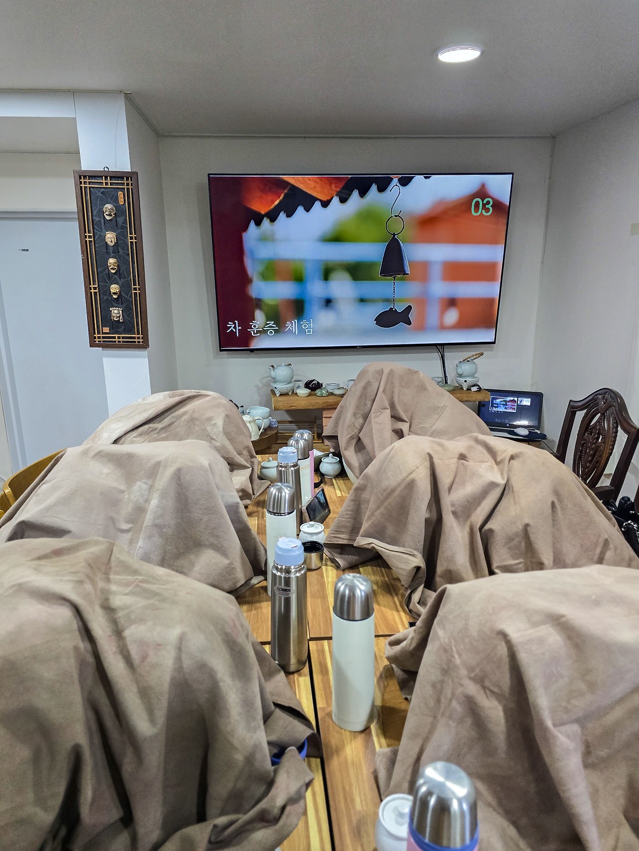 작은 담요를 뒤집어 쓰고 차의 향기에 집중하는 동안, 들숨 날숨에 따라 훈훈한 차향기가 코와 눈 피부에 스며드는 느낌이 들었다. 비염과 감기 완화, 피부 노폐물 배출에도 효과가 있다고 한다. 차 훈증 체험을 끝낸 후, 건조했던 눈, 코, 피부가 촉촉해지는 느낌이 좋았고 상큼한 매실쌍화차 한 잔이 오후의 활기를 찾아주었다.