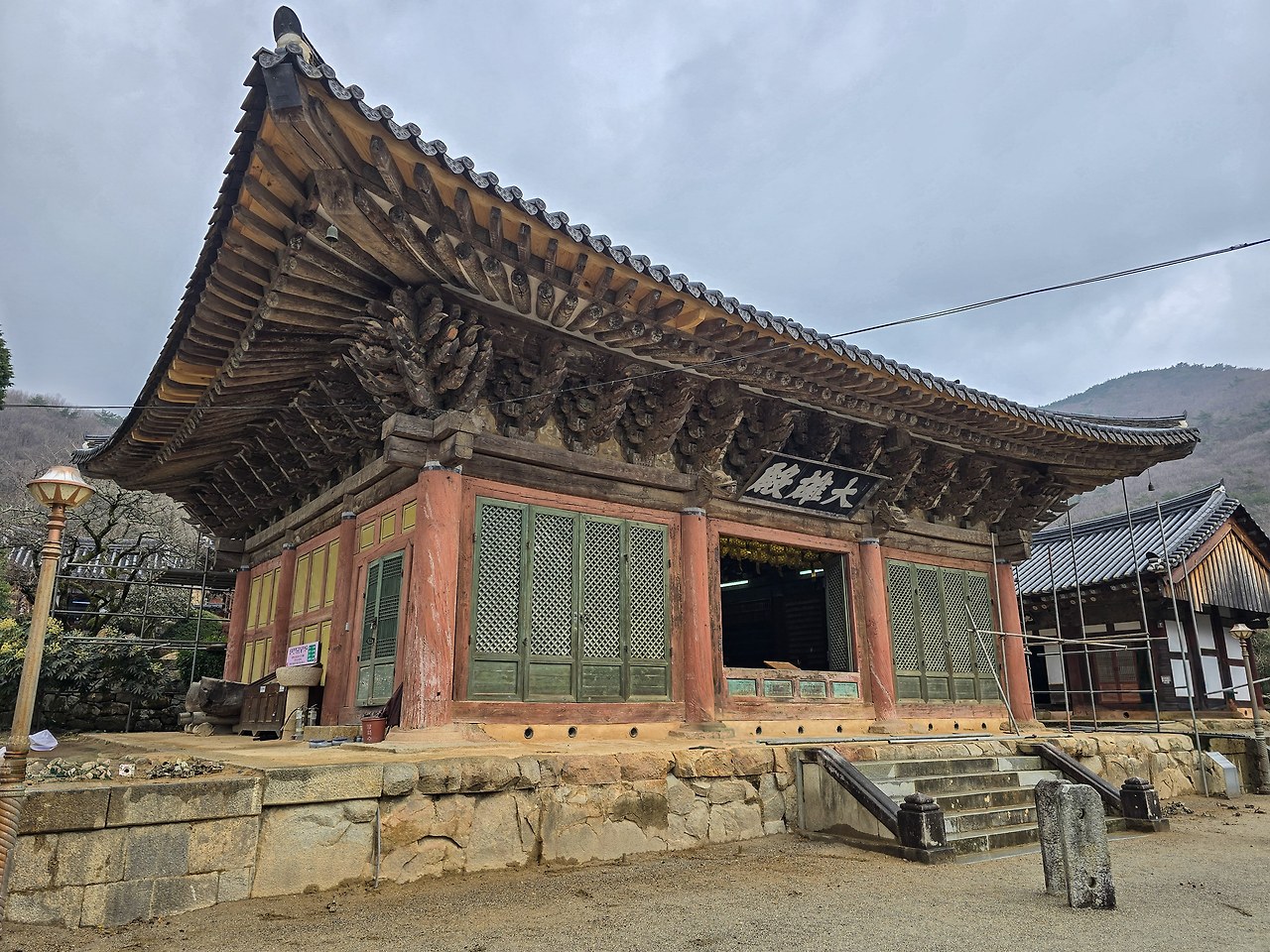 선암사의 대웅전은 석가모니불을 모신 법당이다. 조선 후기의 화려한 건축양식을 보여준다. 지금은 수리중.