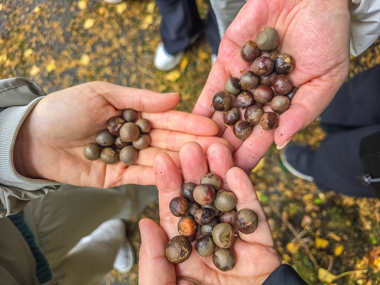 차나무의 씨앗들을 주워서 흔들어보니 달그락달그락 귀여운 소리가 났다. 화분에 심어볼까 하고 주머니에 넣었다. 우리 땅에서 자라는 야생차의 효능에 대한 정보를 듣다보니 차를 늘 가까이 하고 싶다는 생각이 들었다.