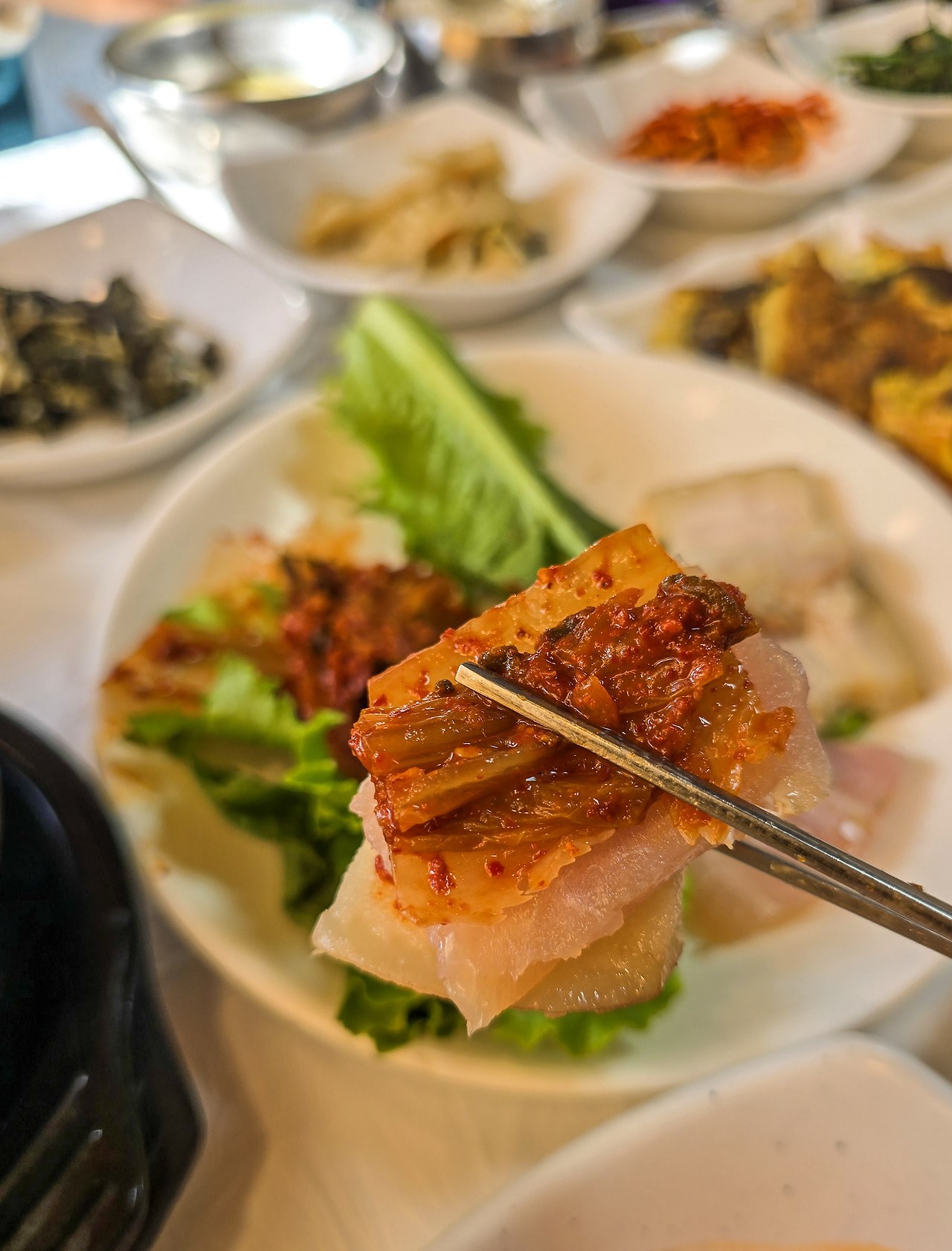 산채정식이라고 부르고 한정식 한 상을 받은 기분이다. 깊은 산속 식당들의 고정메뉴인 도토리묵무침도 맛있었지만, 입맛을 사로잡은 최고의 메뉴는 2년 묵힌 묵은지와 수육, 홍어다. 맛의 중심은 역시 남도 김치였다.