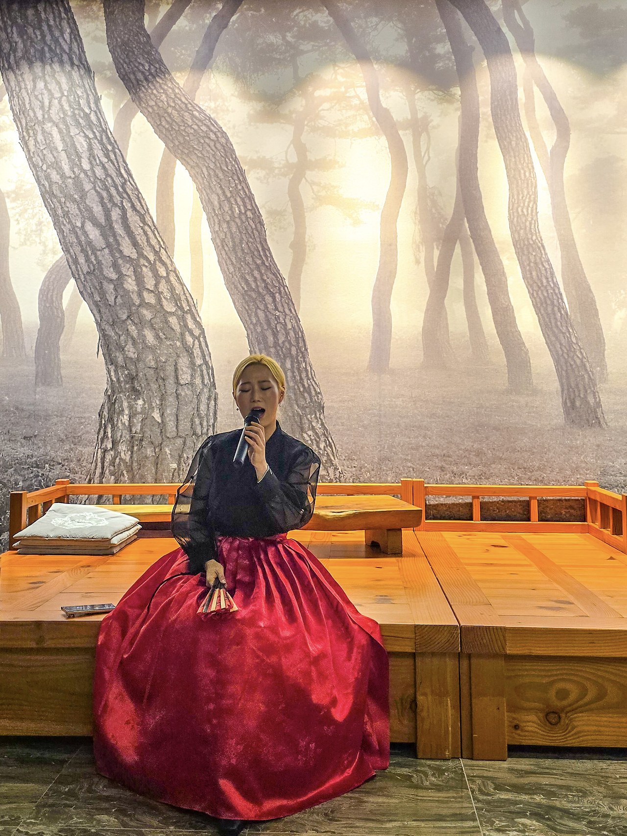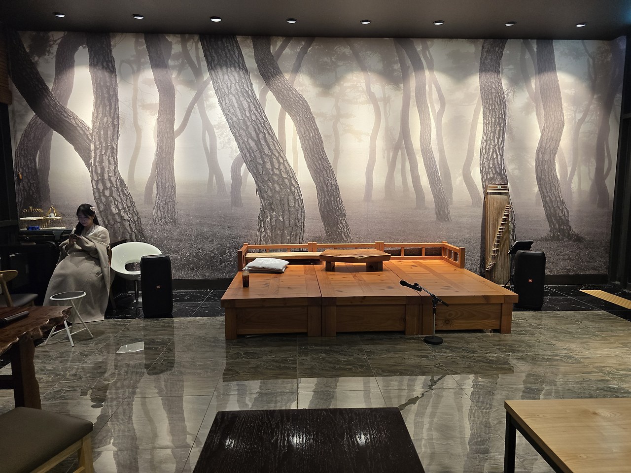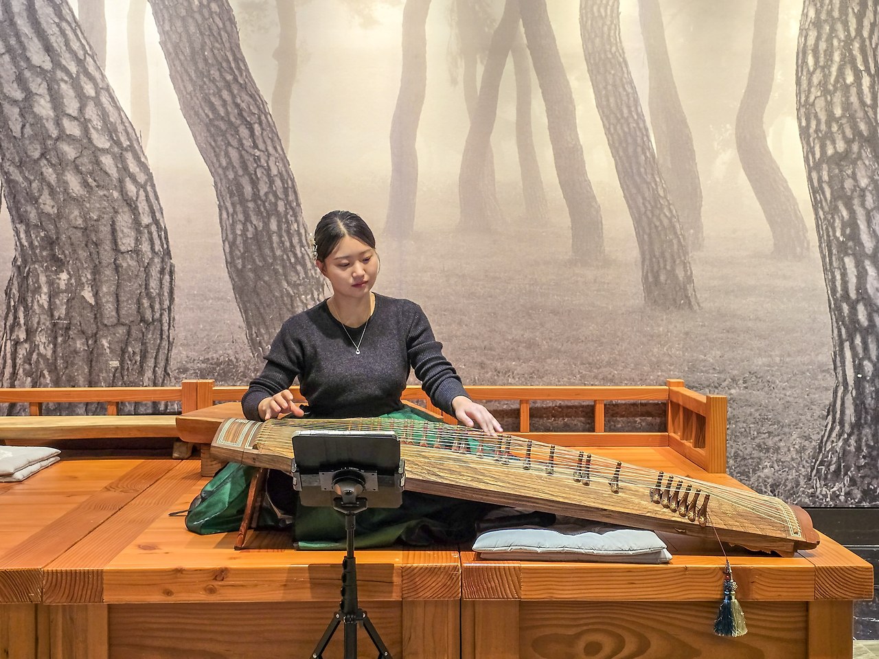 하동 송림공원의 풍경을 옮겨 놓은 듯 소나무 풍경이 아름다운 무대가 준비되어 있었다. 따끈한 대추차 한 잔을 마시면서 편안하게 즐길 수 있었던 퓨전국악공연은 오랜만에 즐기는 전통국악공연이라 더 좋았다.