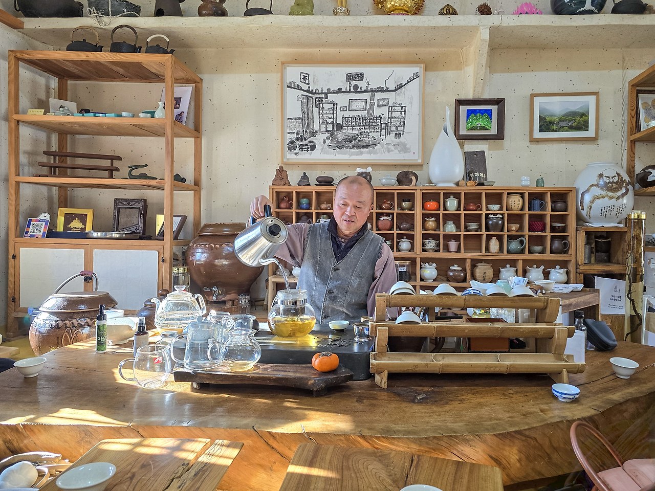 차실에는 스님의 숙성 차 항아리가 익어가고 예술가의 아뜰리에처럼 그림과 사진, 차 향기로 가득하다. 스님이 넉넉하게 내려주는 차는 지리산 화엄사 산자락에서 채취해서 숙성한 죽로야생차다. 차를 마시고 난 후 입안에 은은하게 감도는 차의 단맛과 향기에 힐링하게 된다. 구충암 차담 체험은 입장료가 10,000원, 예약 필수다.