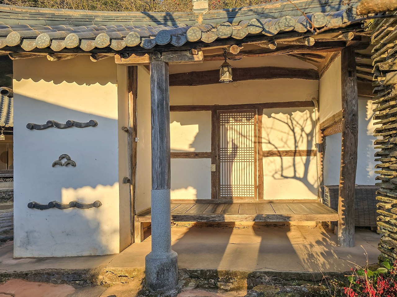 쌍산재를 찾았던 지난 두 번의 기회는 숙박이 메인이었고, 일정에 쫓겨 아침 일찍 그곳을 떠나야 했다. 쌍산재의 오후는 생각보다 아늑하고 기대한 것보다 아름다웠다. 창호지 문에 비치는 오후 3시의 그림자 풍경은 작품 그 자체다. 반질반질하게 손때 묻은 마루에 잠시라도 앉을 수 있도록 허락받은 시간이 여유롭고 행복했다.