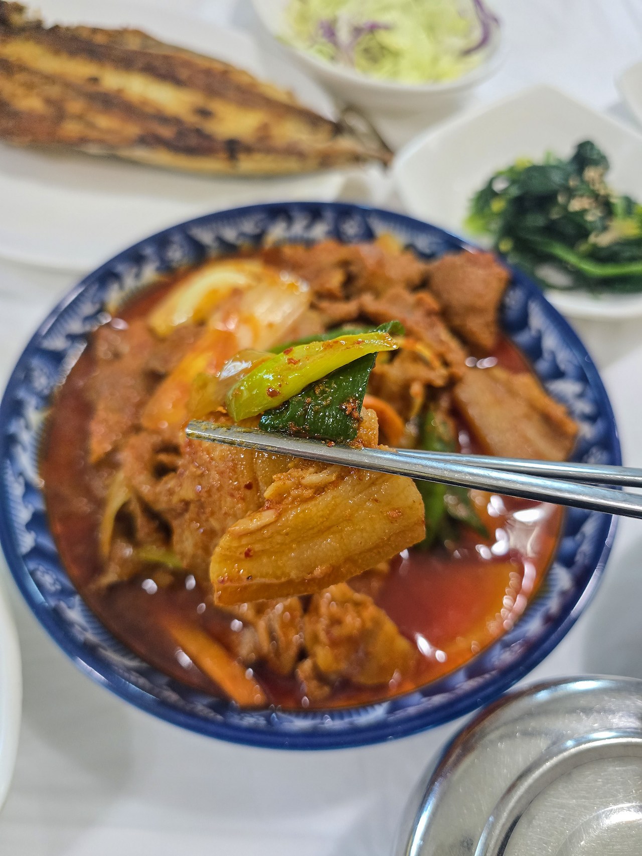 천수무로 만든 깍두기가 시원하고 맛있어서 제육쌈보다 입맛을 사로잡았다. 흔한 멸치반찬도 손맛의 내공이 느껴질 만큼 감칠맛이 나고 시금치나물과 김치, 오이무침도 역할을 톡톡히 한다. 남도의 첫 밥상은 성공적이다.
