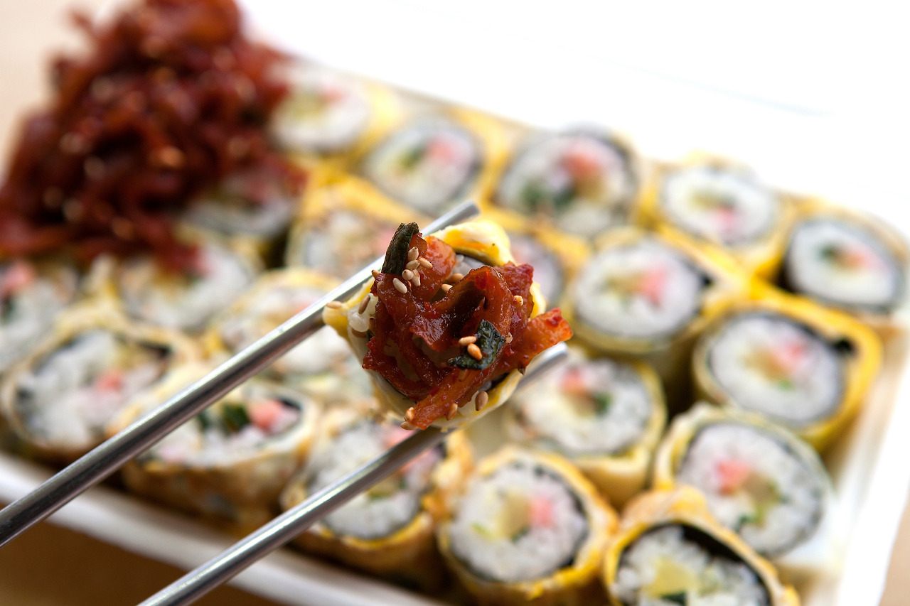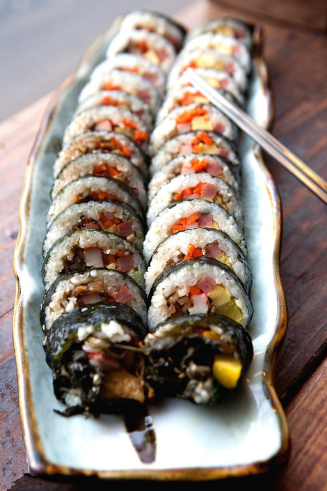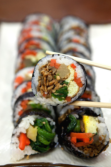 유년의 봄날, 소풍이나 운동회 전날이면 엄마는 새벽부터 김밥을 말았다. 얌전하게 썬 김밥은 도시락에 차곡차곡 담기고 큼직한 김밥 꼬투리는 썰기 무섭게 사라졌다. 새콤한 단무지와 짭조름한 어묵과 달큼한 시금치와 당근이 들쭉날쭉 튀어나온 김밥 꼬투리의 화려한 맛을 어떻게 잊을 수가 있을까. 요즘 트랜드에 맞춰 판매되는 김밥처럼 밥보다 속 재료가 넉넉하게 들어가는 풍성한 맛이었다. 새콤달콤한 단무지 대신 파프리카와 산나물이 들어가고, 햄 대신 숯불고기와 고소한 유부를 볶아 넣고, 달걀옷을 입은 김밥과 장아찌의 환상적인 조합 등, 김밥의 변신은 무한대로 진행 중이다.