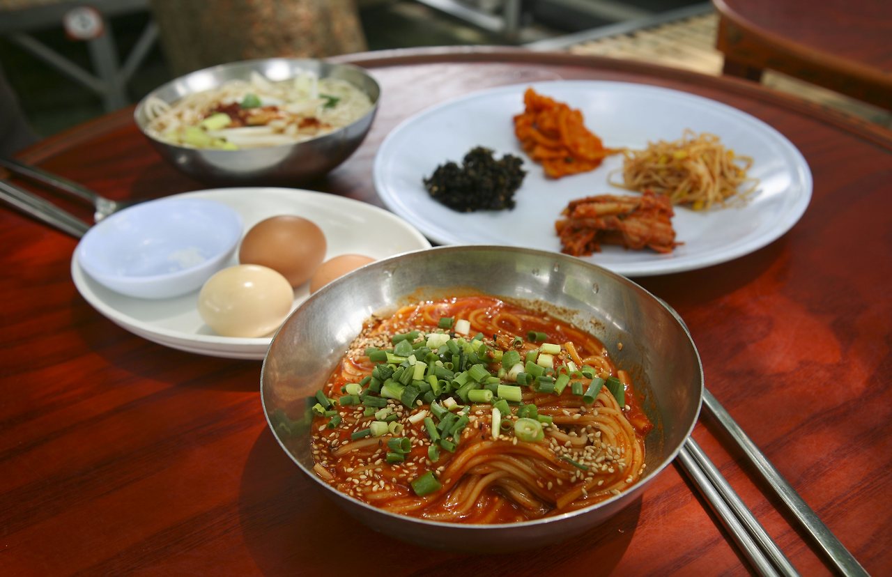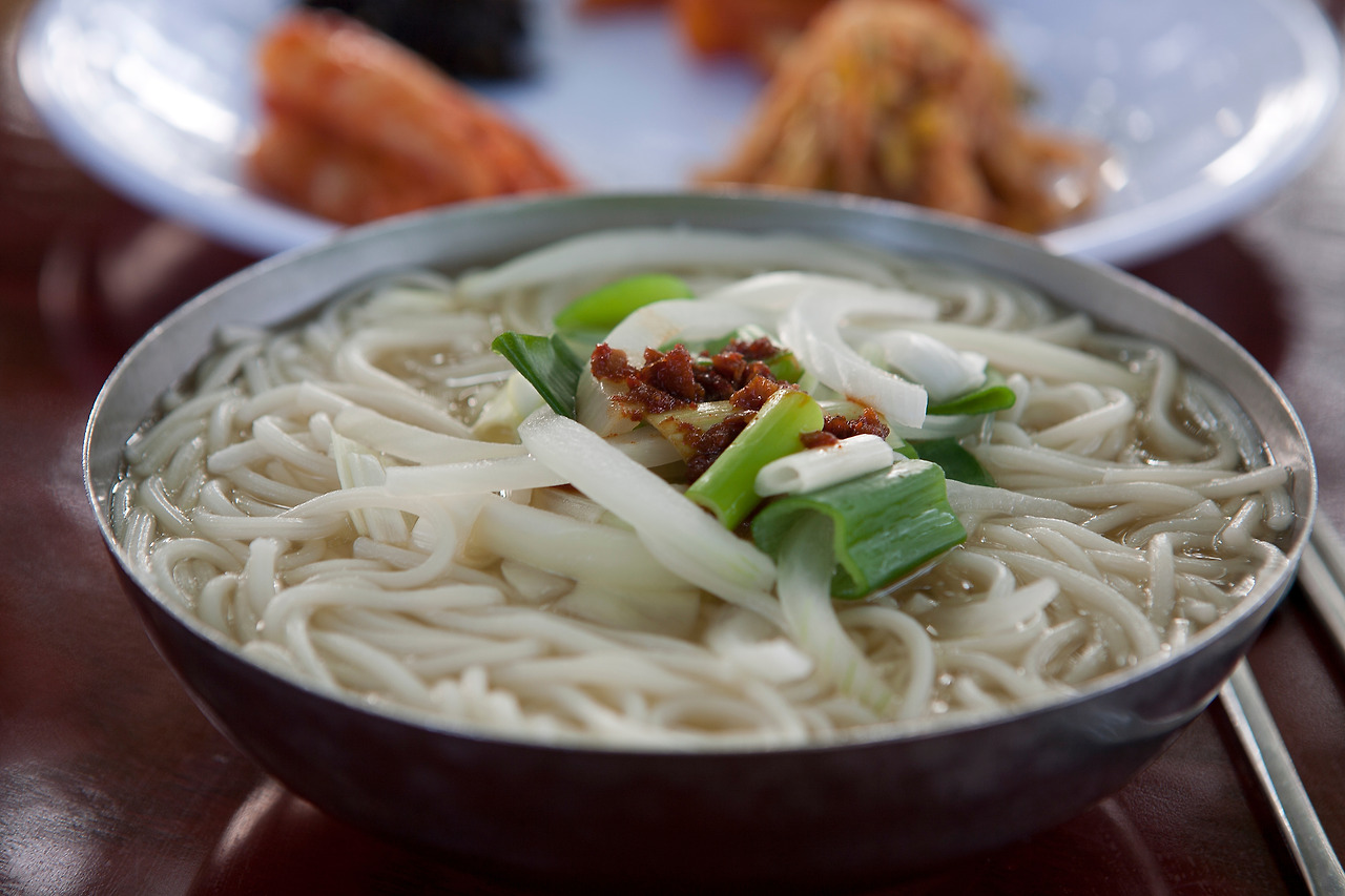 그동안 계속 상에 올랐다는 단무지무침, 김무침, 콩나물무침, 묵은 김치는 국수 한 그릇의 반찬으로는 과분하다 싶은데, 비빔국수나 멸치국수를 먹다 보면 야금야금 사라지는 요술 반찬이다. 국수 거리 저 멀리서부터 유혹하는 구수한 냄새의 주인공, 멸치육수는 매일 아침에 신선하게 끓여낸다.