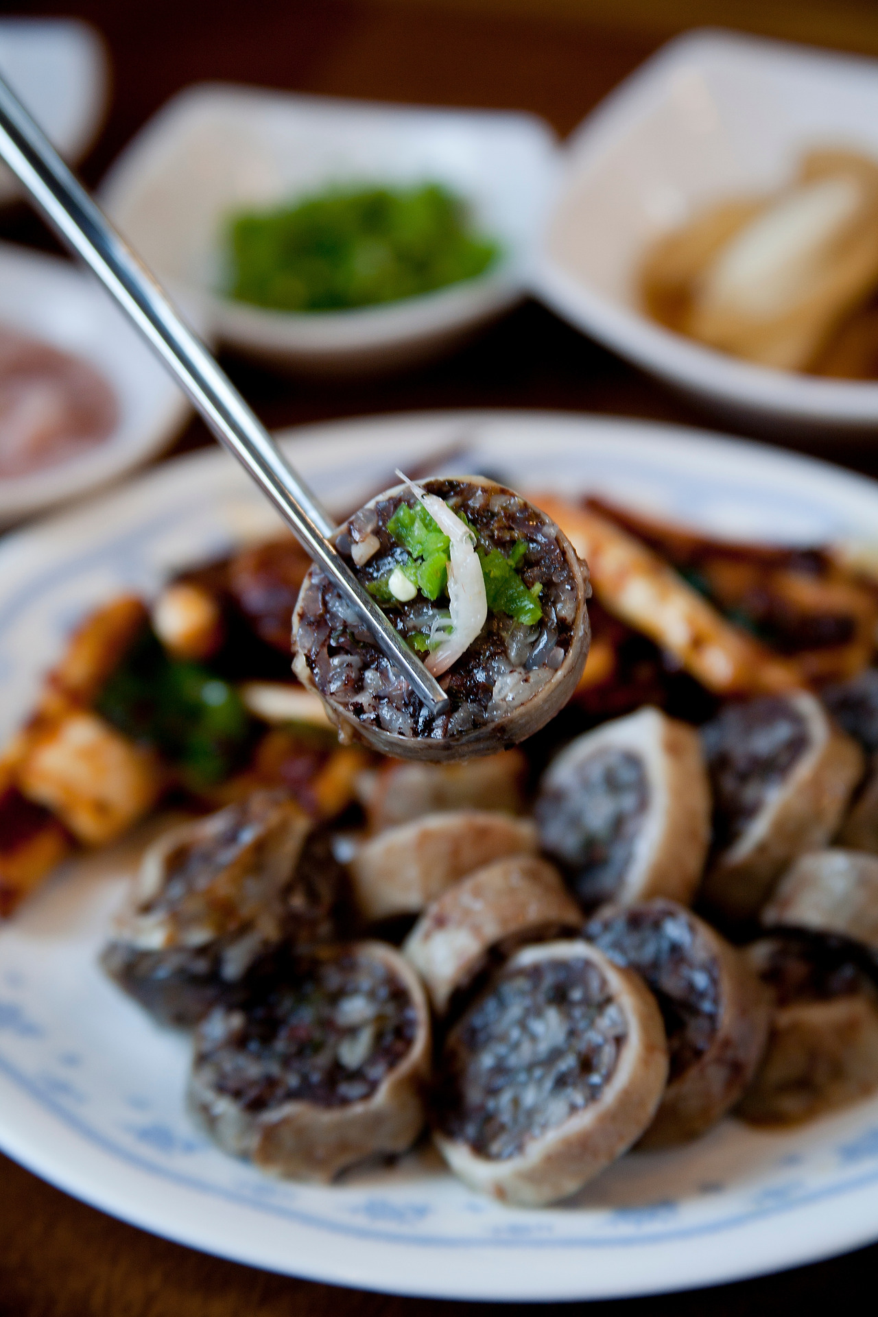 용궁면의 용궁 순대는 막창이나 소창을 이용하기 때문에 일반 순대의 식감과는 비교가 안 된다. 큼직한 크기에 속은 쫀득하고 부드러운 순대를 그냥 먹어도 맛있지만, 맑은 돼지육수에서 말랑하게 익혀 나온 순댓국 속의 순대가 별미다. 주말에는 손님이 많아 보통 1시간씩 대기하는데, 식당 건너편에 시골버스 대기실 같은 소박한 휴게실도 마련해 놓았다. 마음 씀씀이가 다른 주인장은 달라도 뭔가 다르다.