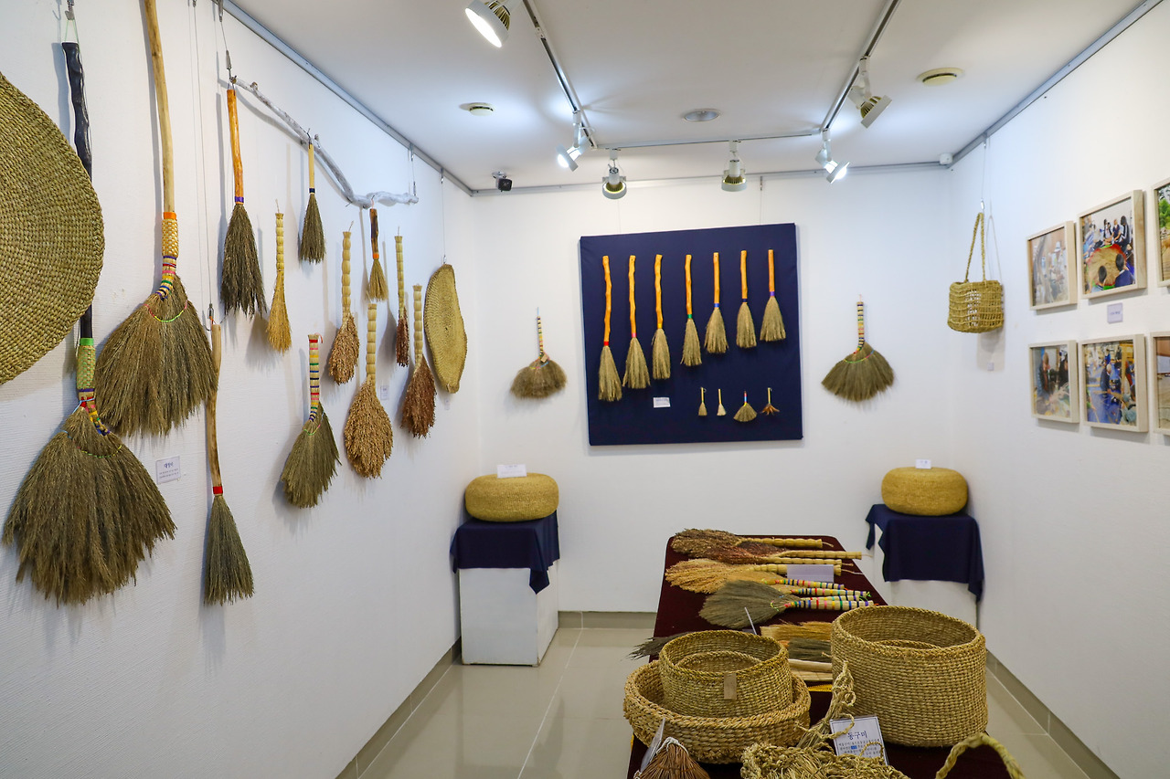 달팽이미술관에 전시 중인 짚공예 작품들