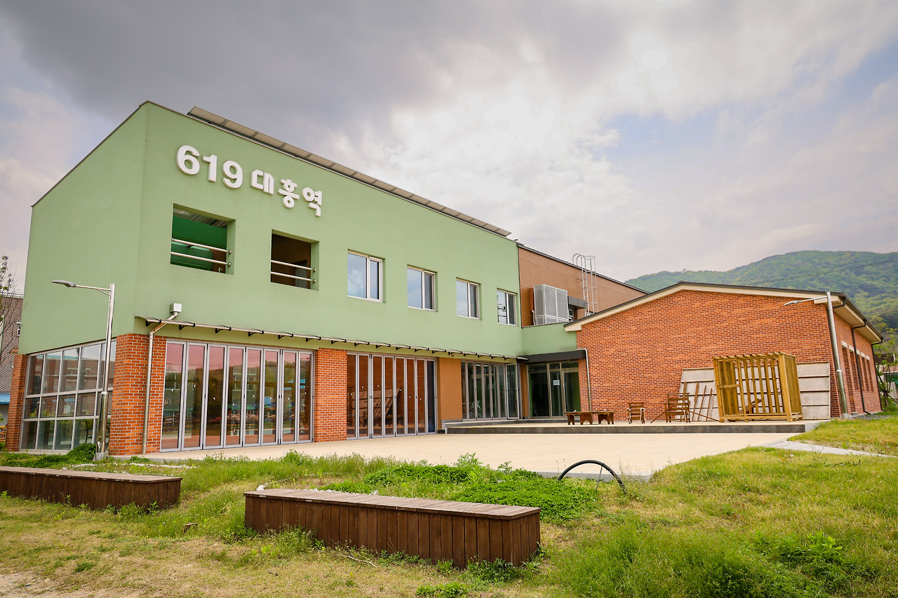 예산군은 충남 북서부 지역의 교통중심지로 서해안 고속도로, 619 지방도로와 연결된다. 이것이 ‘더 느린 여행’의 베이스캠프인 <619 대흥역>의 중요한 의미를 발견하는 포인트이다. <619 대흥역>은 실제로 기차가 정차하는 역이 아니라 인접 지역의 경제 문화 관광 활성화의 중심 역할을 한다는 상징적 의미를 갖는 장소다. 619 지방도로의 중간 지점에 위치한 대흥의 <619 대흥역>은 지역 주민의 생활 문화 공간은 물론 인접 지역의 관광문화를 이어주는 허브 역의 역할을 갖는 곳이다.