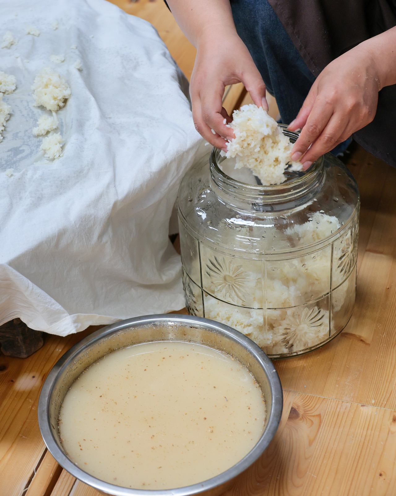 멍 때리기 덕분에 컨디션이 좋아졌다면, 대흥마을의 전통 막걸리 만들기 체험을 할 시간이다. 전통주 만들기는 단순한 음식 만들기가 아니라 우리의 전통과 문화를 경험하는 시간이다. 찹쌀 고두밥을 지어 누룩과 물을 섞어 항아리에 넣고 덩어리가 없도록 잘 풀어 준다. 이틀 후 항아리 속을 뒤집어 주고 온도를 잘 맞춰준다. 사흘 후부터 밑에 물이 고이기 시작하면 일주일 정도 후에 술을 거를 수 있다. 깨끗한 물과 찹쌀, 누룩으로만 빚은 고품격 전통주이다. 이틀 정도 더 숙성시키면 더 부드럽고 깊은 막걸리를 맛볼 수 있다. 잘 띄운 누룩으로 만든 막걸리는 건강한 유산균이 느껴지는 새콤하고 고소한 맛이다. 대흥에는 1920년대부터 시작하여 1990년대에 문을 닫은 대흥양조장이 있다. 전통주 전문가들이 감탄할 만큼 옛 양조장 시설이 그대로 보존되어 있어 머지않아 양조박물관으로 개관하기를 기다리고 있다.