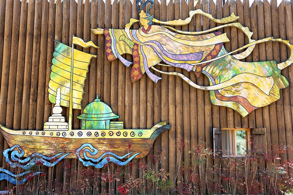 가야로 항해하는 배와 허황옥 공주를 그린 벽화