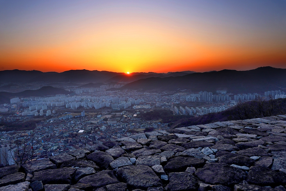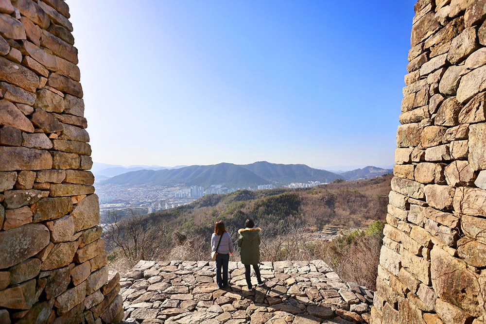 김해시가지와 김해평야를 내려다보는 전망 좋은 분산성