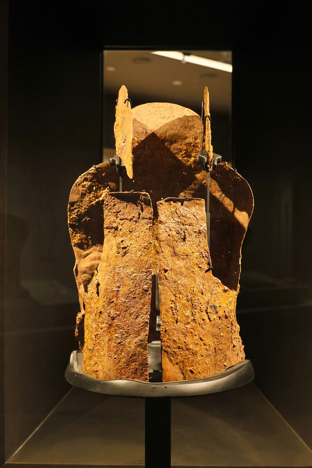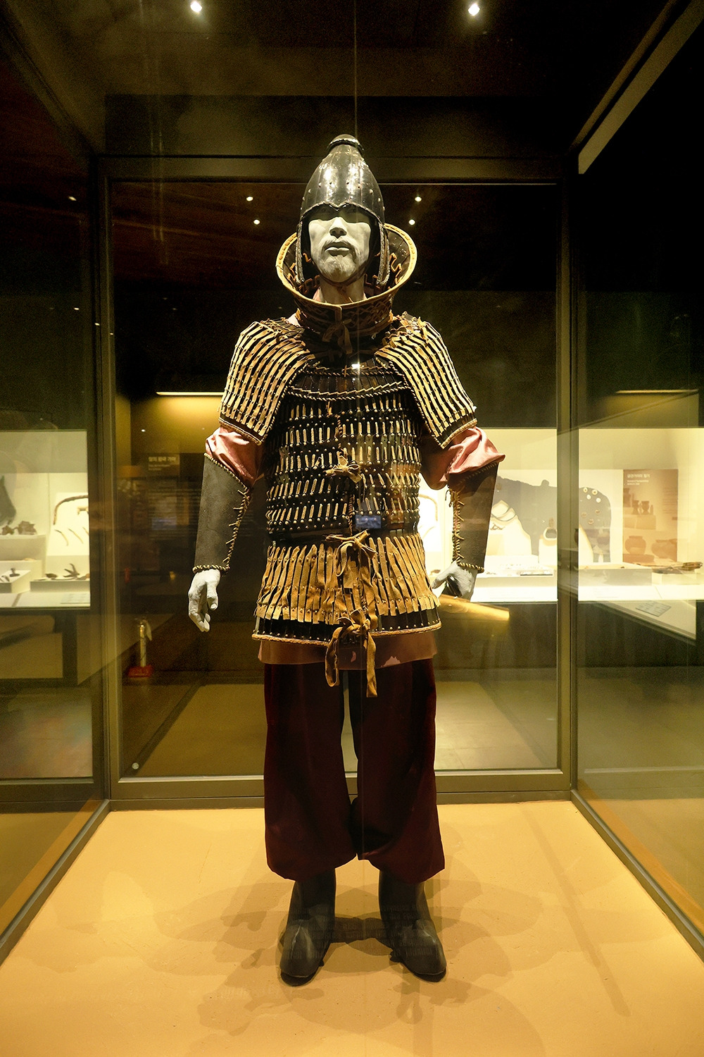 1998년에 개관한 국립김해박물관은 가야뿐만 아니라 부산, 경남 지역의 선사시대, 변한의 문화와 유물까지 다양한 전시물로 가득하다. 본관은 1층과 2층으로 이루어져 있다. 1층은 낙동강 하류에 형성된 선사 문화부터 가야가 태동하고 발전한 시기를 보여준다. 2층 전시실은 가야 사람의 생활 풍습과 유물을 통해 가야문화를 폭넓게 살펴보는 공간이다. 붉은빛으로 거칠게 녹슬었지만 형상이 고스란히 남은 갑옷과 투구를 보며 번성했던 가야 시대를 상상하게 한다.
