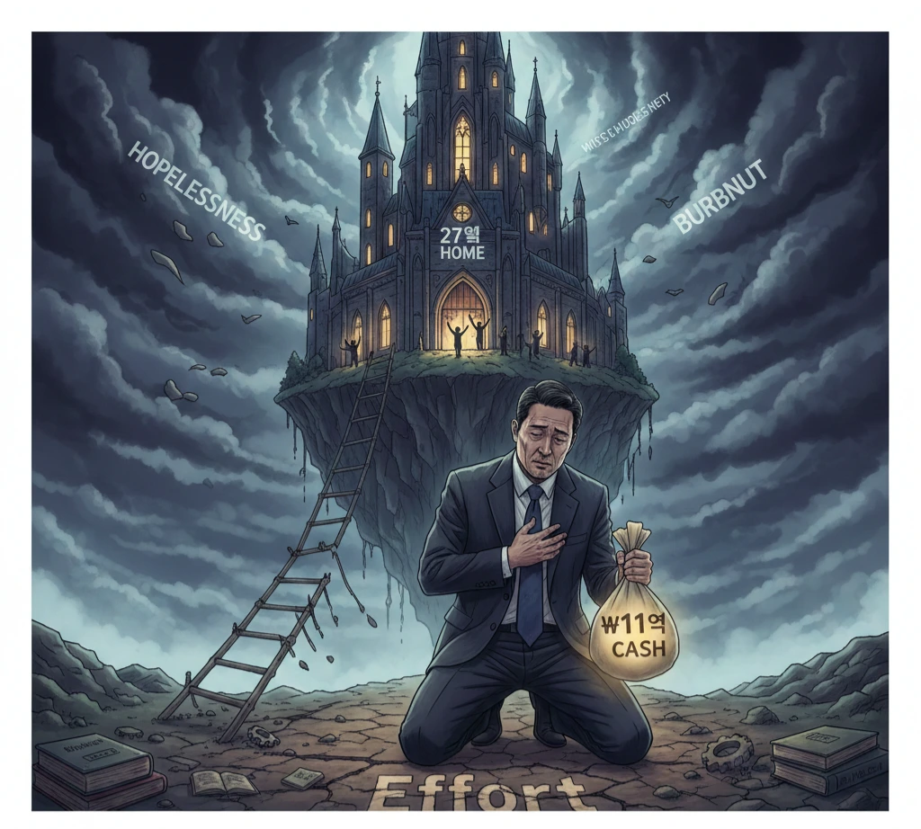 남들보다 더 좋은 학벌을 얻기 위해 젊음을 저당 잡혔고, 남들보다 더 높은 연봉을 받기 위해 내 몸과 마음을 갈아 넣었다. 그렇게 억척스럽게 11억이라는 실탄을 만들었지만, 세상은 비웃듯 보란 듯이 기회의 문을 닫아버렸다. 내가 한 걸음 나아갈 때, 집값은 열 걸음 달아났다. 노력하면 할수록 목표는 더 멀어지는 이 지독한 역설 앞에서, 내가 믿어온 '성실'이라는 종교는 처참히 파산했다.