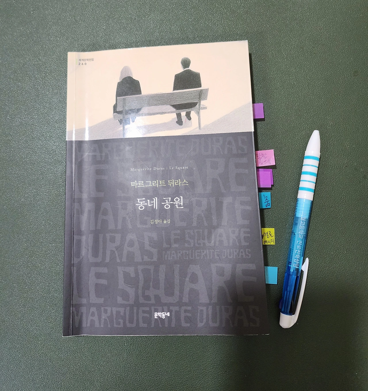 마르그리트 뒤라스의 <동네 공원>을 읽던 도중, <죽고 싶지만 떡볶이는 먹고 싶어>의 저자 백세희 작가의 비보를 기사로 접했다. 책이 손에 잡히지 않았다. 모호하고 쉼 없이 이어지는 대화체에 몰입하느라 애를 먹던 차였다. 누구의 대사인지 헷갈리기 시작했다. 궁여지책으로 젊은 여자의 말에 빨간색 볼펜으로, 남자의 말에는 파란색 볼펜으로 밑줄을 그으며 독서를 이어갔다. 그렇게 해야 혼란한 감정이 정리될 것 같았다.
