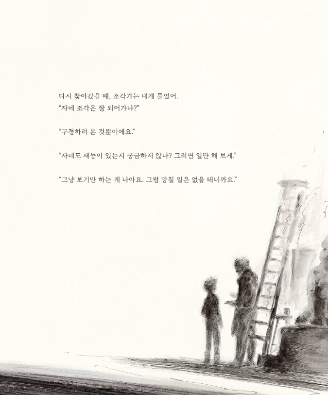 스승 조각가가 어린 제자에서 전하는 담담한 위로의 말 중 실패자가 된다는 건 무언가를 뜨겁게 사랑했고, 온 마음을 주었다는 문장이 가장 와 닿았다. 우리가 실패라는 말을 아무 때나 쓰지는 않지 않나. 무언가에 진심이었지만 원하는 대로 되지 않았을 때 쓰는 말이다. 그러니까 실패했을 때, 자신을 비난하지 말고 먼저 감싸줘야 하는 것이다. 그리고나서 새 마음을 가지면 된다. ‘근사하게’ 해내겠다는 무거운 마음 말고, ‘기꺼이’ 실패할 수 있다는 가벼운 마음을. 하지만 이게 말이 쉽지, 실패할 수 있다는 마음을 먹기 어디 쉬운가. 어쩌면 그녀들도 이 두 마음을 왔다 갔다 하면서 버틴 결과 성공에 이르지 않았을까.