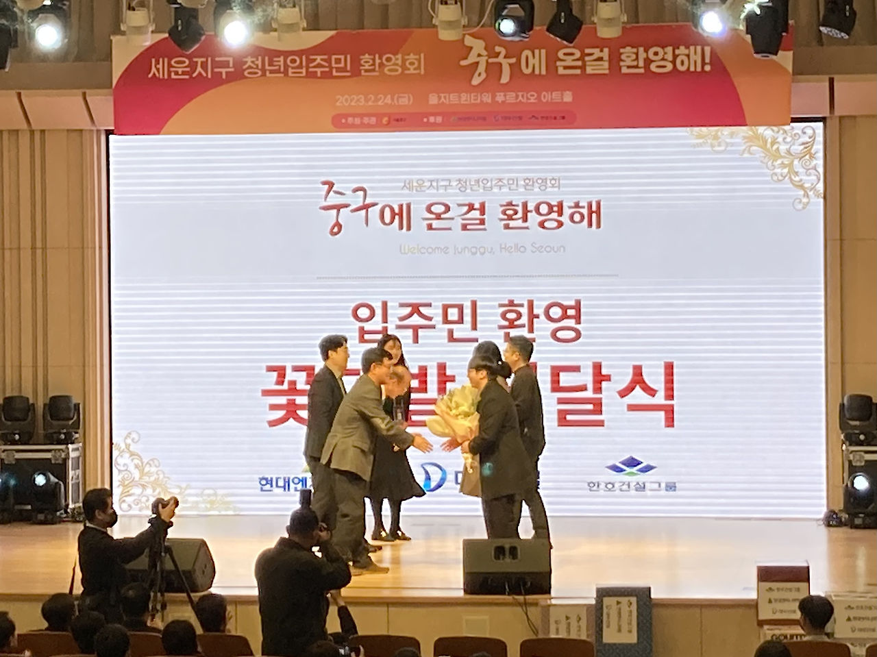 ‘세운지구 청년 주민 입주민 환영식’ 준비에는 중구청의 인력과 자원이 총동원됐다고 해요. 자치행정과·복지정책과·가족정책과·홍보담당관·도심재정비전략추진단 등 여러 부서가 공동으로 준비했고, 당협위원장·시의원 등 지역구 정치인들도 모두 참석했지요.