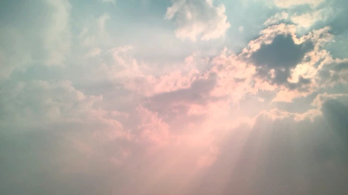구름 사이에서 햇빛이 찬란하게 스며 나올 때