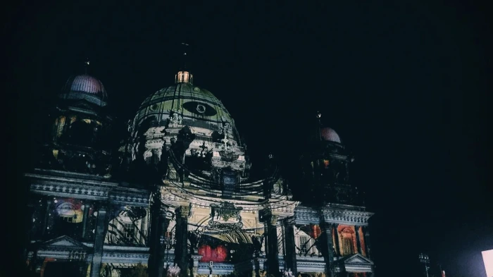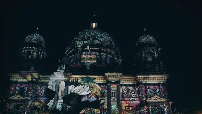 우리가 도착했을 때는 건물 외부를 스크린 삼아 빔 프로젝터 영상 쇼를 하고 있었다.