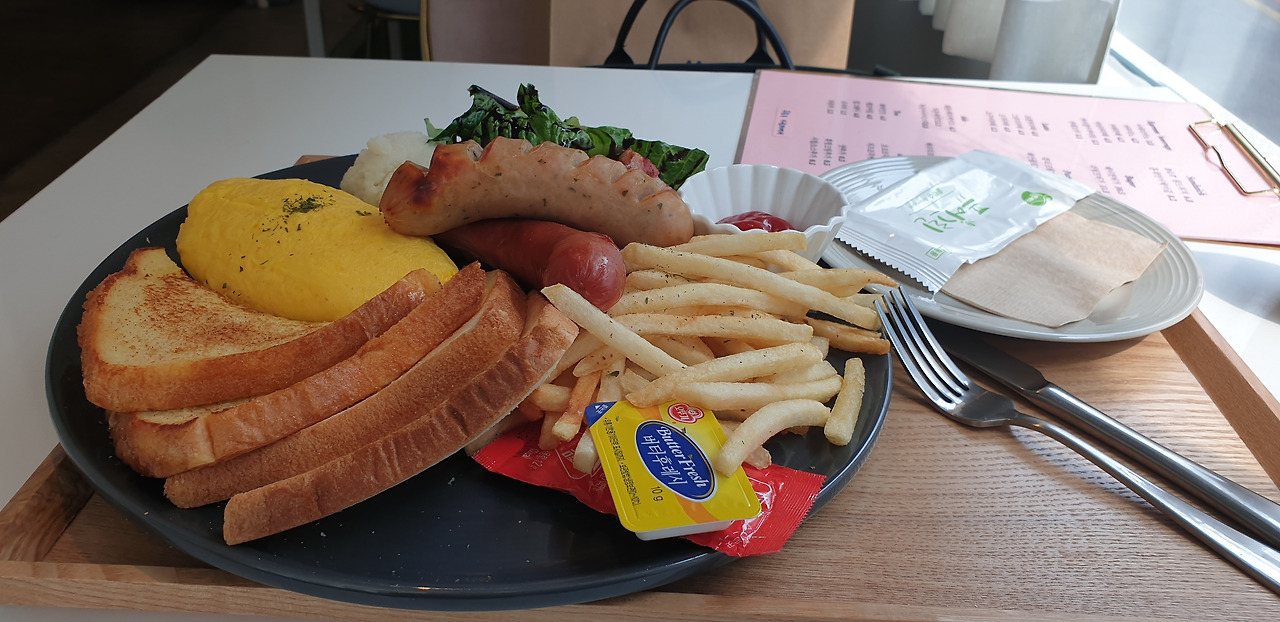 "역시 혼자서 마음을 정리할 시간이 필요해.."라고 생각하면서 방금 나온 브런치 소시지를