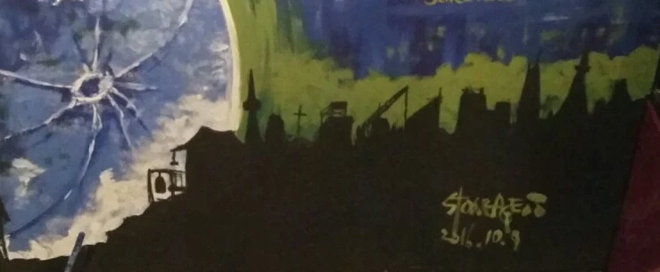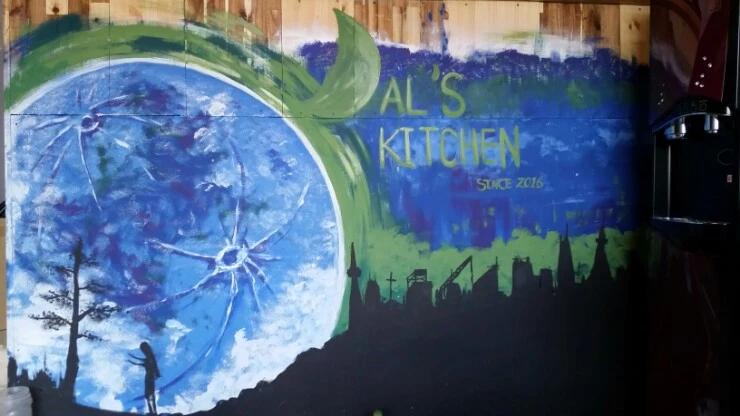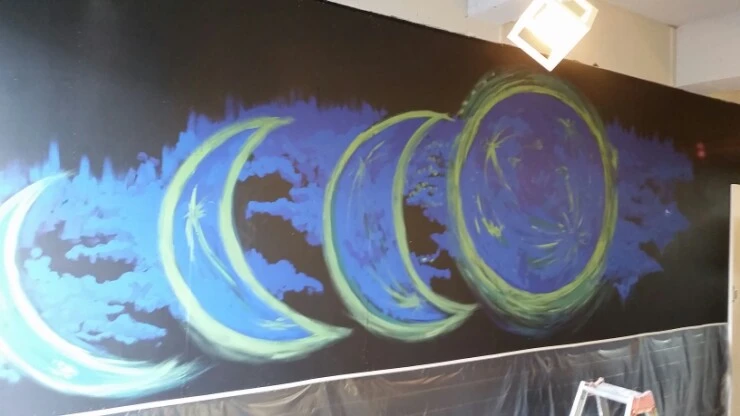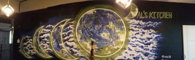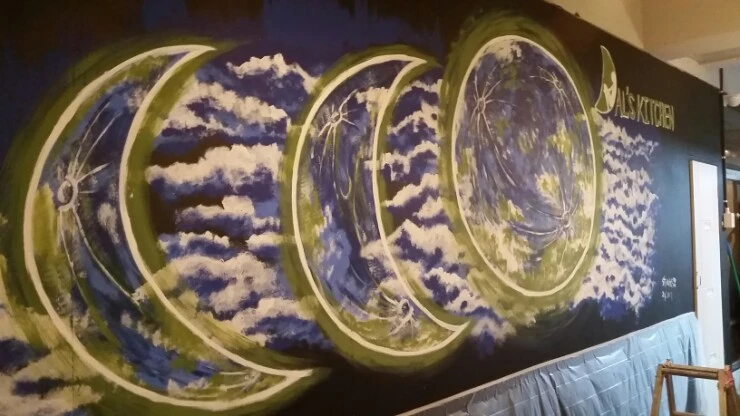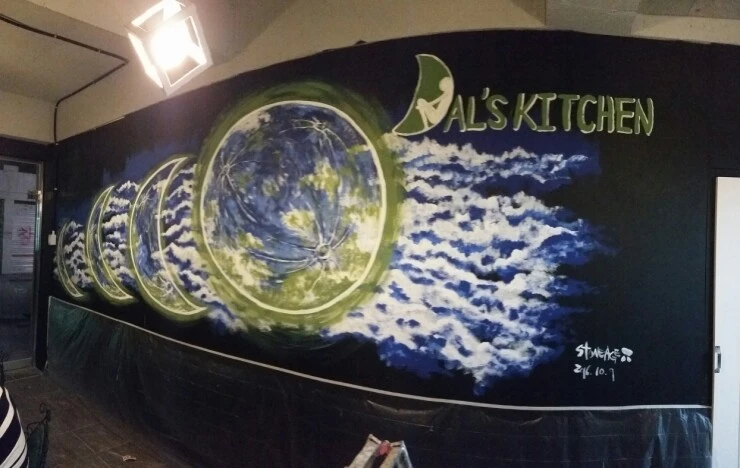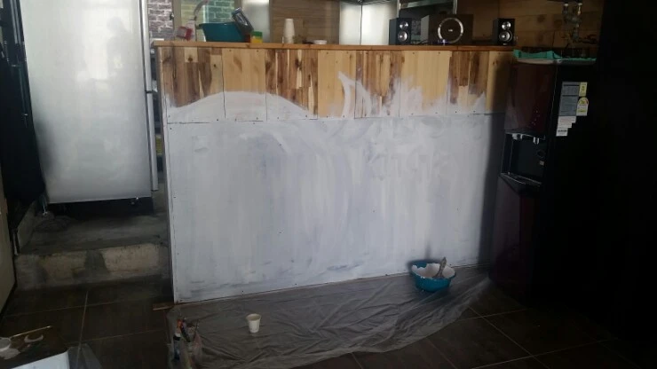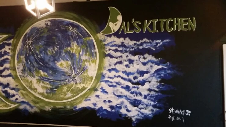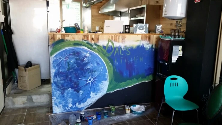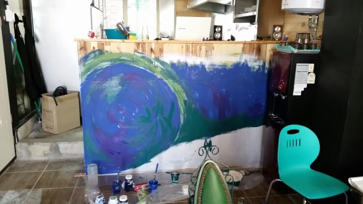 주방 앞 테이블 벽에도 하나 더 그려 넣는다