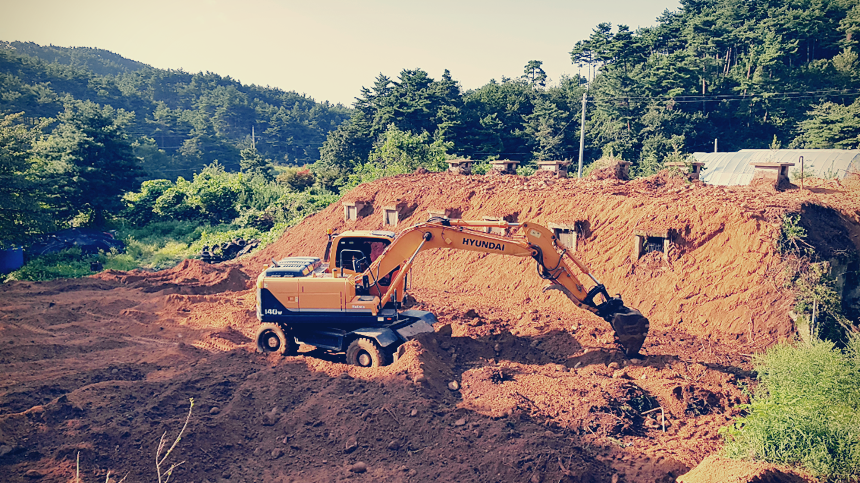 '땅 잘못 샀네.. 어쩔 수 있나.. 부수든가 해야 농사짓지..'