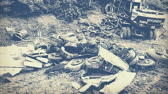 쏟아져 나오는 폐타이어들을 바라보면서,