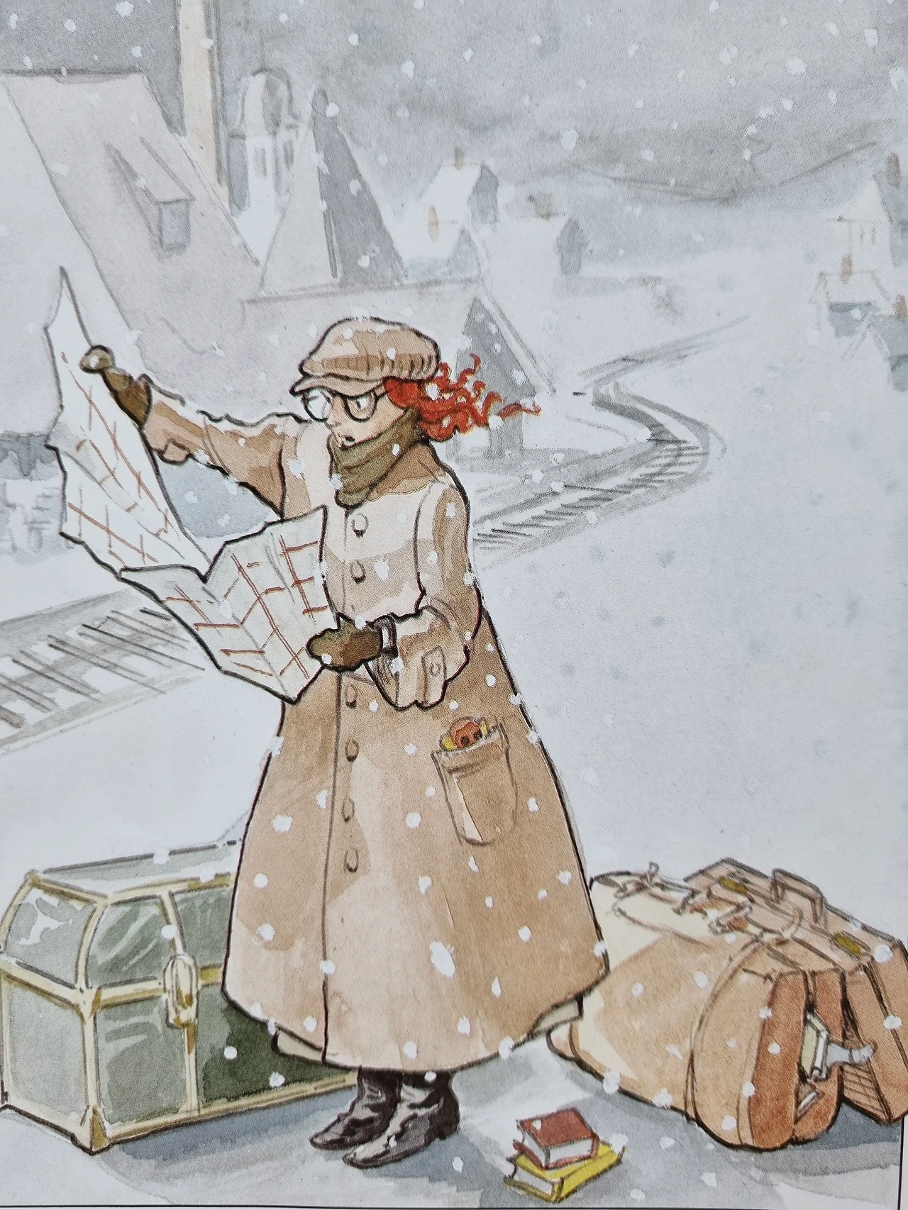 흥미로운 점은 이 그림책에서 주인공이 정면을 응시하는 컷, 주인공을 정면에서 그린 컷이 하나도 없다는 것. 작가의 시선은 주인공이 책과 관련하여 무엇인가를 하고 있는 장면을 한 발자국 떨어져 멀리서 그리거나, 창가에 다리를 올리고 차를 마시면서 책을 읽는 장면을 살짝 뒤에서 비껴 나서 촬영하듯이 그린다. 이러한 그림 각도는 인간 사회와는 적당히 거리를 둔 채 오로지 책으로 가득한 자기 만의 세상에서 살았던 주인공 엘리자베스 브라운의 삶을 반영한 것이 아닐까 싶다.