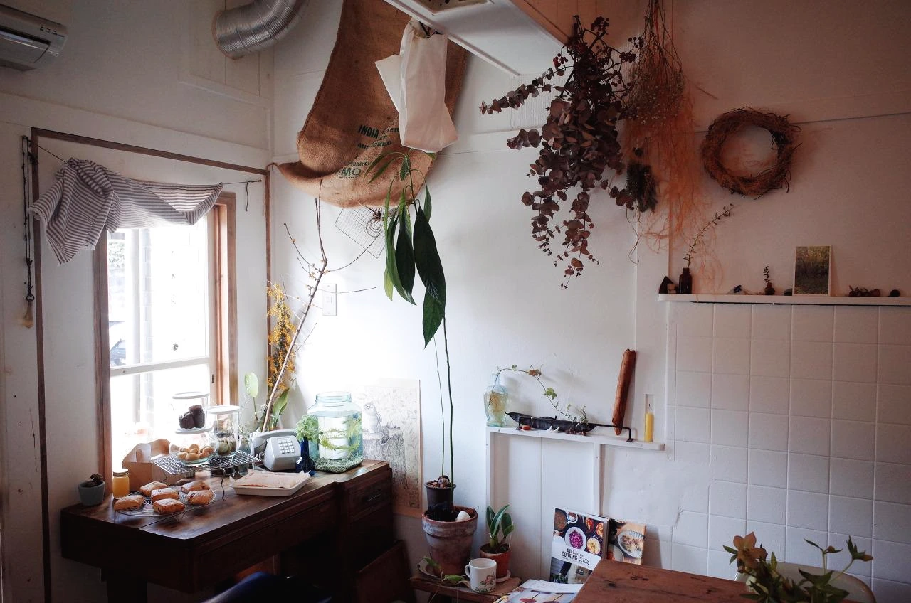 공간은 그곳에 머무는 사람을 닮는다는 말을 들은 적 있다. 테이블과 선반마다 작은 식물을 두는 사람, 매일 자신과 자신 주변의 사람들을 위해 스콘을 굽는 사람, 직접 볶은 원두로 따뜻한 커피 한잔을 대접하는 사람. 그런 두 사람이 함께 운영하는 '스위스 커피, 플랜츠'는 여느 공간보다 편안하고 아늑하다. 스위스의 풍광과 꼭 닮은 기요사토 고원 리조트에서 근무한 경험이 있는 운영자가 그때의 추억을 카페 이름에 담았다고. 문을 열고 밖을 나서면 히가시야마의 둥그런 능선이 카페 주변을 포근히 감싸고 있다.