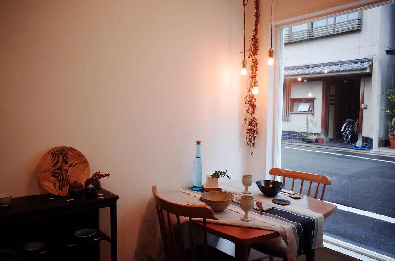 2016년 6월 문을 연 와카바야에는 오래된 과거가 있다. 쇼와 시대부터 잡화를 판매해온 부모님이 가게 문을 닫으면서 지금의 주인 부부가 공간을 이어받은 것이다. 이전까지 도쿄에서 생활한 두 사람이 교토로 이주하며 선택한새로운 삶은 간사이 출신 작가의 그릇을 소개하는 일. 와카바야에는 도예 작가인 삼촌의 작품도 함께 놓여 있다. ‘좋아하는 그릇이 있는 생활’이라는 모토에 마음이 동한 나는 손바닥에 쏙 들어오는 둥그런 백자 코자라小皿(작은 접시)를 장만했다.
